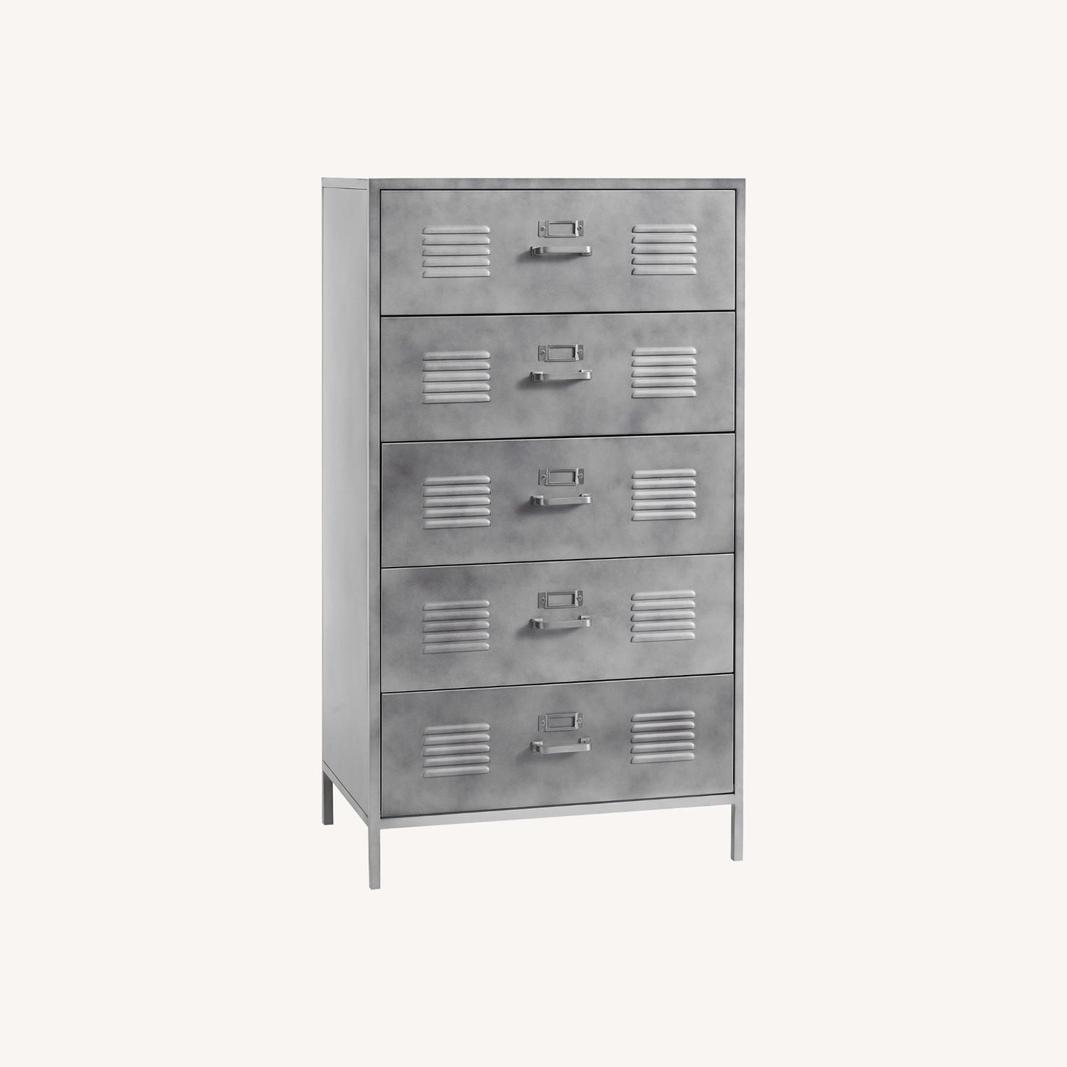 Seller's Notes:Keep your things organized with this industrial-style, space-saving dresser, featuring five generously sized drawers. It’s expertly crafted to last for years to come and has drawer fronts that feature classic locker vents and label brackets. GREENGUARD Gold Certified to contribute to healthier indoor air, keeping you and your family safer. Made from mild steel with an hand-applied antiqued finish. Drawers open smoothly on metal glides and feature drawer stops for safety. Rigorously tested to meet or exceed all required and voluntary safety standards. Anti-tip kit included: comes with safety-tested mounting hardware, instructions and a nylon strap. To prevent injuries from furniture tip-over, this item should be securely fixed to the wall. how to install anti-tip kits.