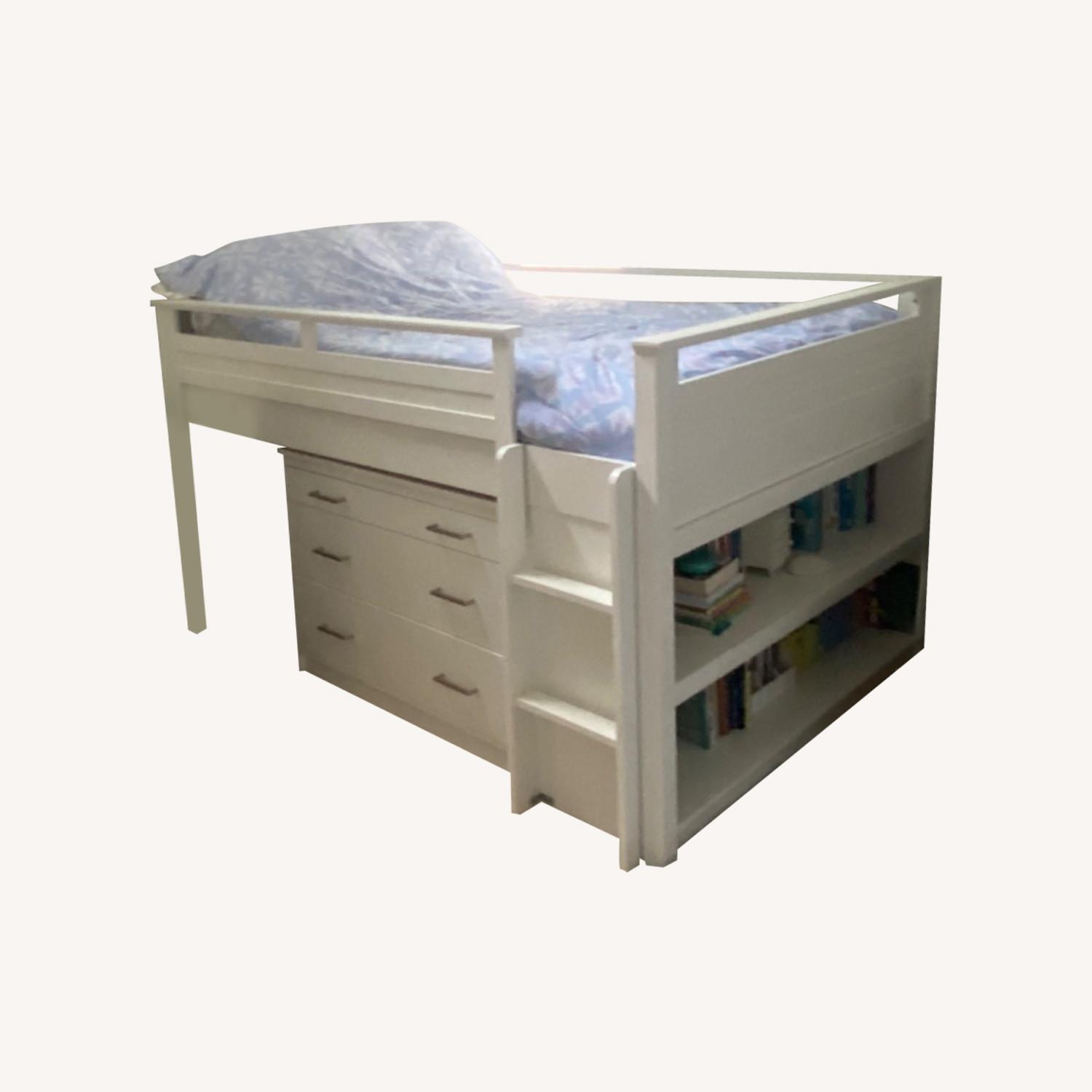 Seller's Notes:Bed has been used in second home with very little wear and tear. Purchased approximately 3 years ago. This bed is located on the 2nd floor, one flight of stairs. Includes loft bed with attached side book shelf, as as well as desk and chest of drawers.