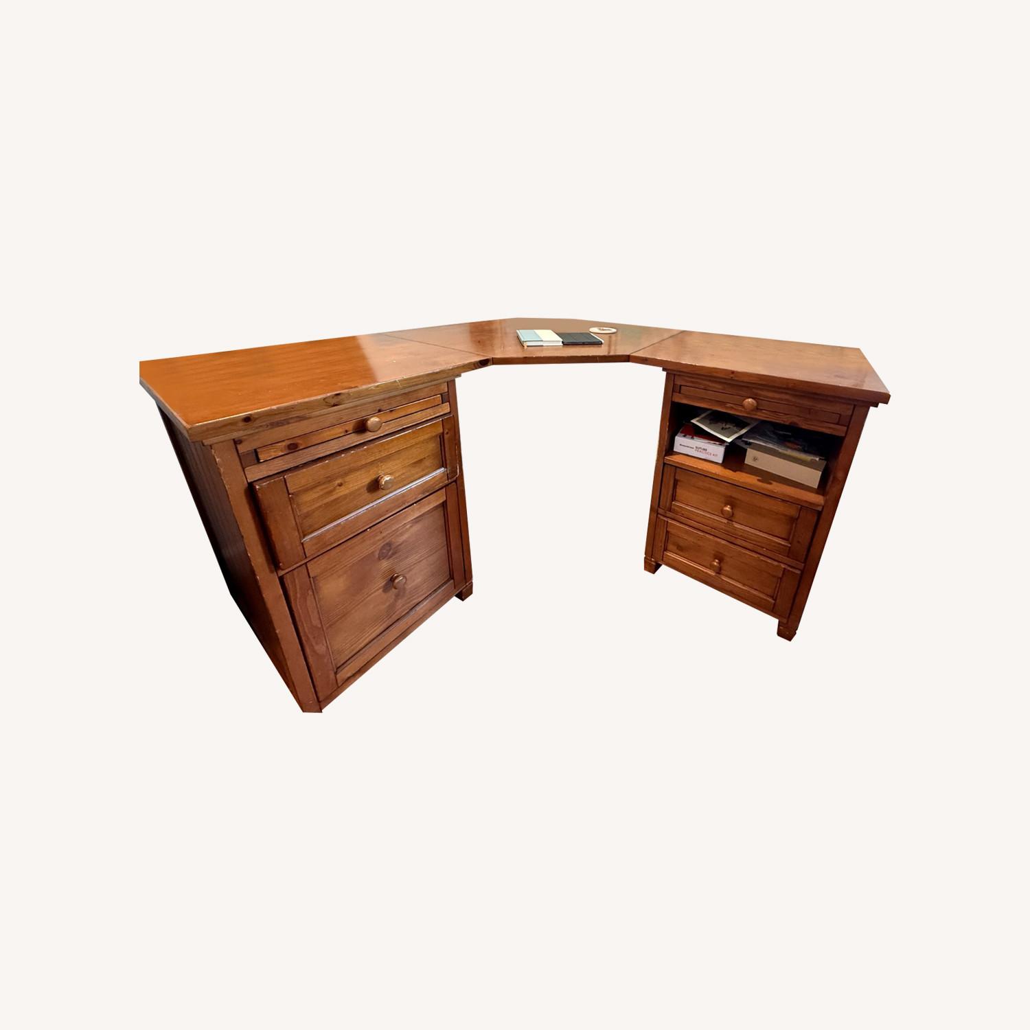 Seller's Notes:I am selling this Pottery Barn Corner Desk from 2008. Better construction and quality than ones made today. There is cosmetic damage and scratches from age. It will last a long time. It has an inbuilt power strip and writing tables.