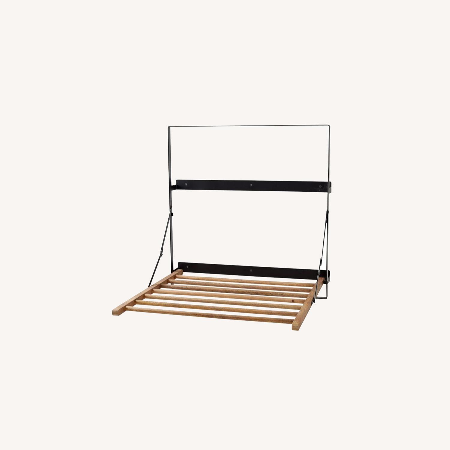 Seller's Notes:Smart and stylish, our modular Trenton Organization System puts your walls to work with a mixed-material design of wood and metal. Specifically designed for your laundry room (or laundry closet), this space-saving rack is great for drying delicate garments and folds up when not in use. Made of mild steel and mango wood. Metal features a black powder coat finish. Mounting hardware included. Imported.