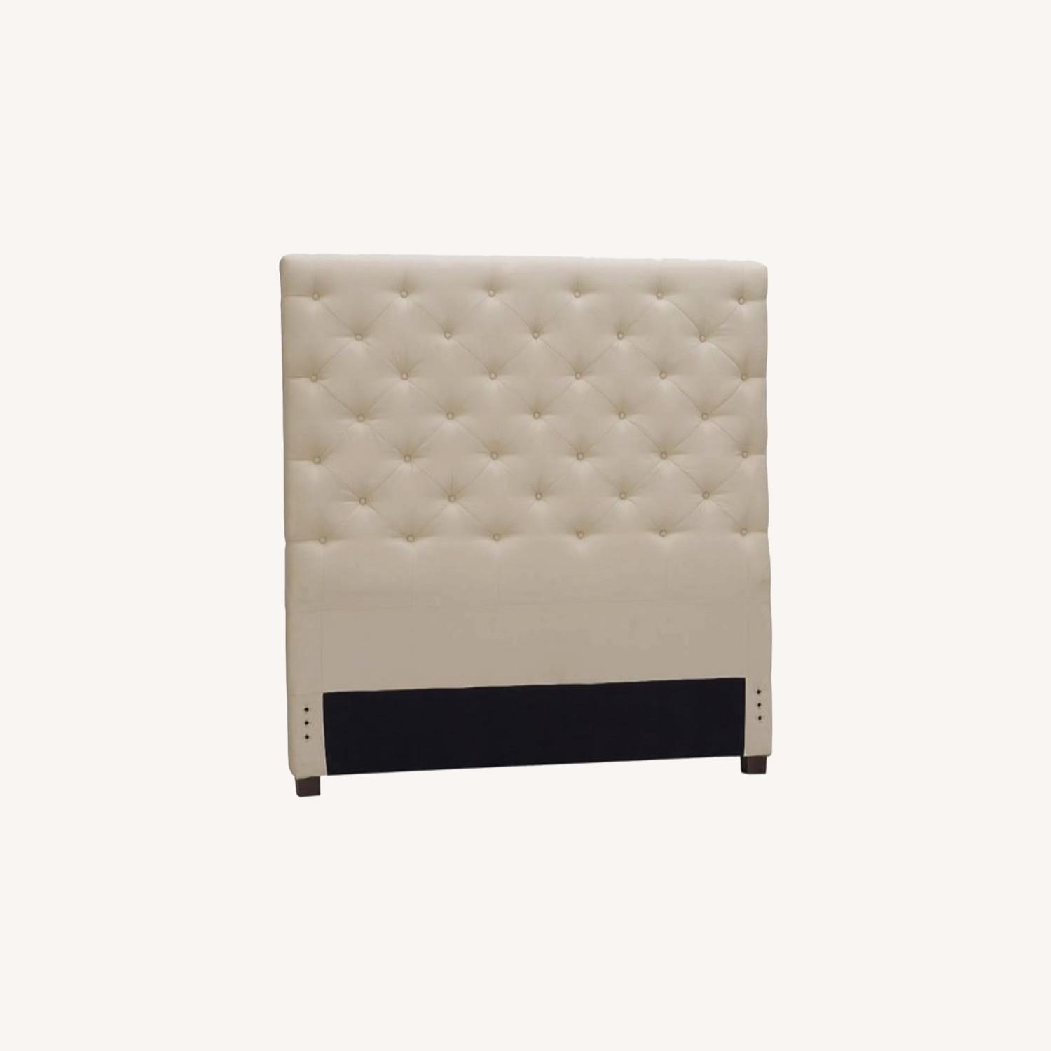 Seller's Notes:Pottery Barn - Queen - Lorraine Tufted Tall Upholstered Headboard in Oatmeal Linen. This is a lovely piece, thicker and more luxurious than it looks in photos, even than in professional photos on Pottery Barn. Very well padded, tight upholstery and so it's very supportive and comfortable. This is from a house with a cat, and the cat has climbed up the side more than once, and if you take a look in the images you can see the marks but the fabric is oatmeal linen which is nubby and thick to begin with. Just want to be upfront about that. Moving out of my apartment and looking to liquidate my apartment before moving. ** Since some were asking I've added a photo of where it attaches to a frame at the bottom. I'm using a standard metal frame. You can see the black heavy duty fabric that protects the bottom part of it in the photo.