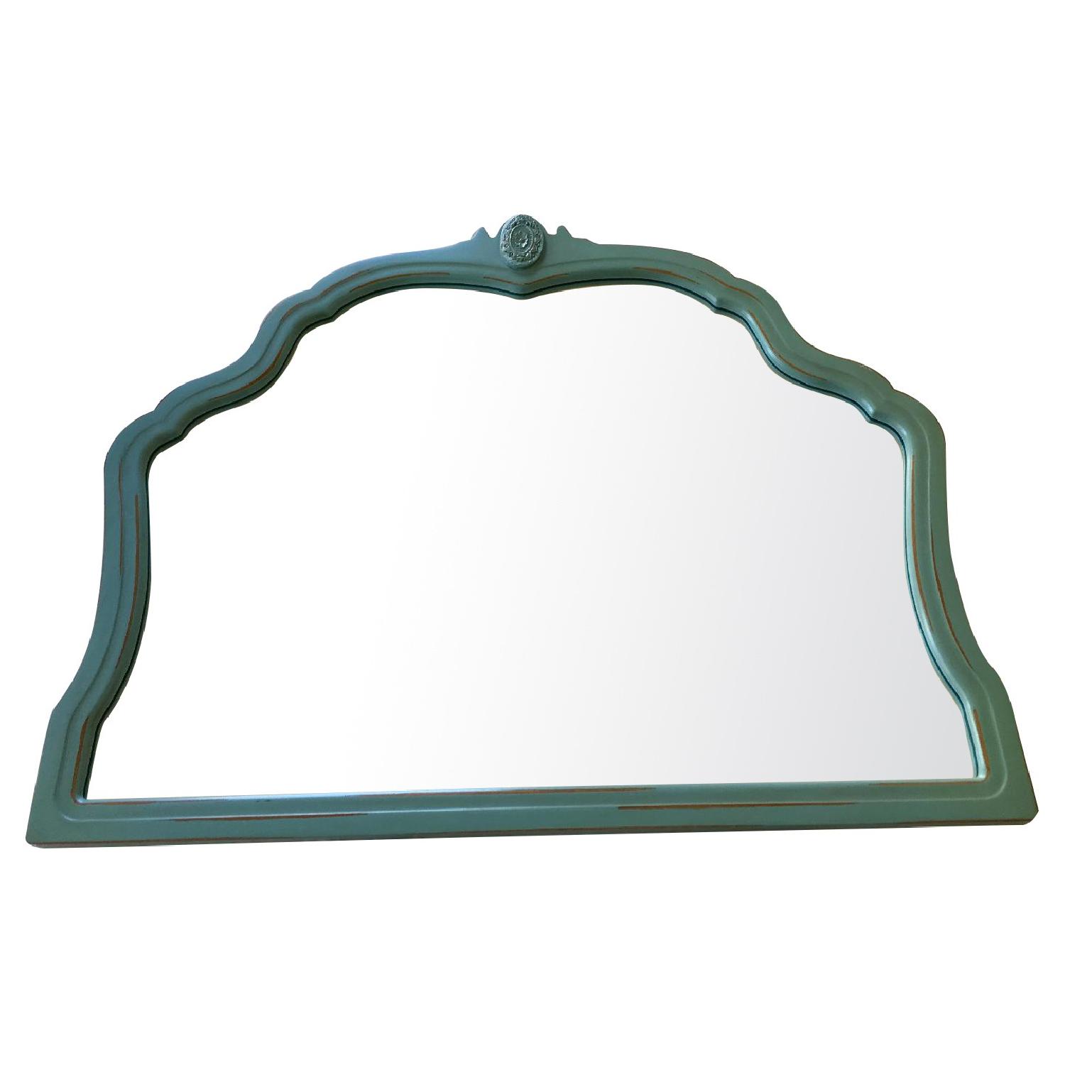 Seller's Notes:We are selling a turquoise blue vanity wall mirror from Pottery Barn. Though we've had it for a number of years, it is in pristine condition and shows no sign of wear or damage. Measurements are from the widest parts.