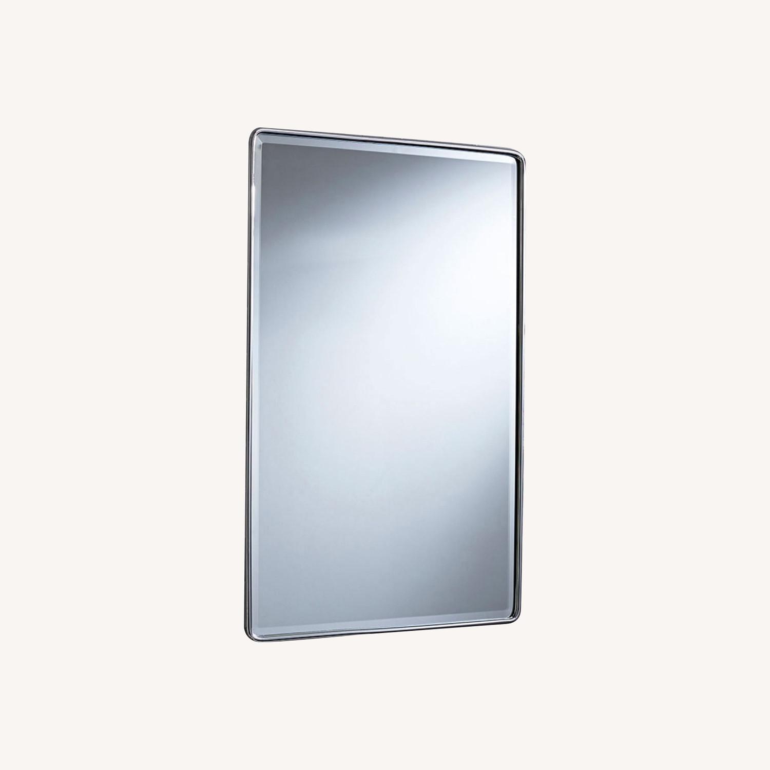 Seller's Notes:Expertly crafted of steel, aluminum and glass. Adjustable shelves are made of tempered glass. Sealed with a protective lacquer for moisture resistance. Fitted with beveled mirror. Small features 2 adjustable tempered-glass shelves; large has 3 adjustable shelves. Can be mounted to open left or right. Features Chrome, Polished Nickel, Satin Nickel, Brass, Warm Bronze, or Matte Black finish. Tempered glass is a safety glass that is manufactured through a process of extreme heating followed by rapid cooling, making it harder than normal glass and resistant to breakage. Inset measurements are approximate; please measure cabinet carefully before installing or making any alterations to your walls. Professional installation required. Contract grade.