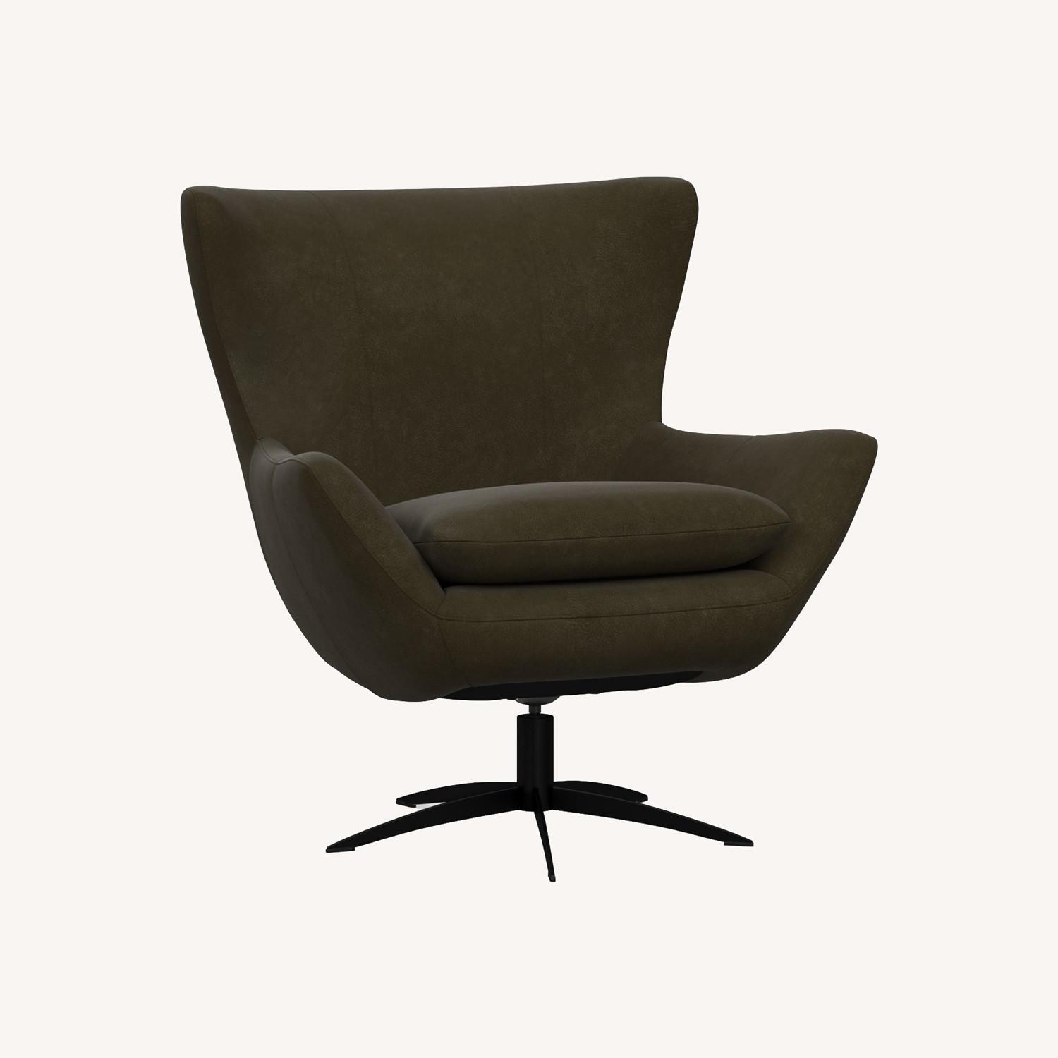Pottery Barn Wells Leather Petite Swivel Armchair