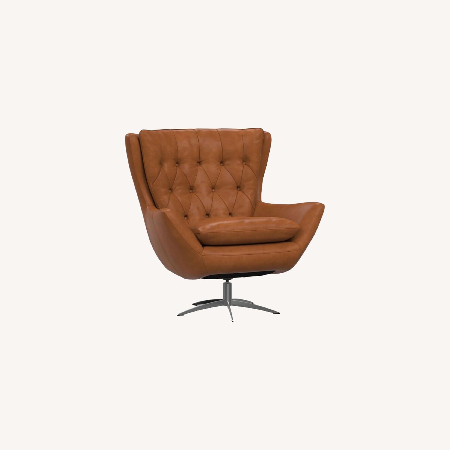 Pottery Barn Wells Tufted Leather Swivel Armchair