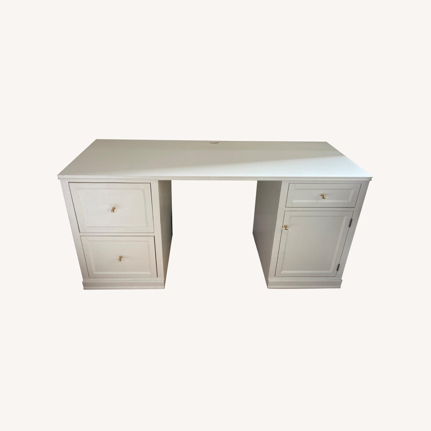 Seller's Notes:Huge pottery barn desk in great condition! White with gold hardware. Only selling since moving apartments with less space. Lots of space and great storage!