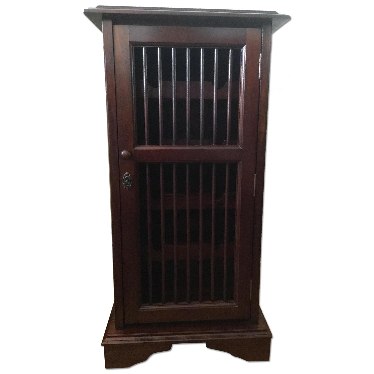 Seller's Notes:Pottery Barn wine cabinet with mahogany finish. Holds 10 bottles. Great condition. Dimensions: 31"H x 13.5"W x 16.5"D