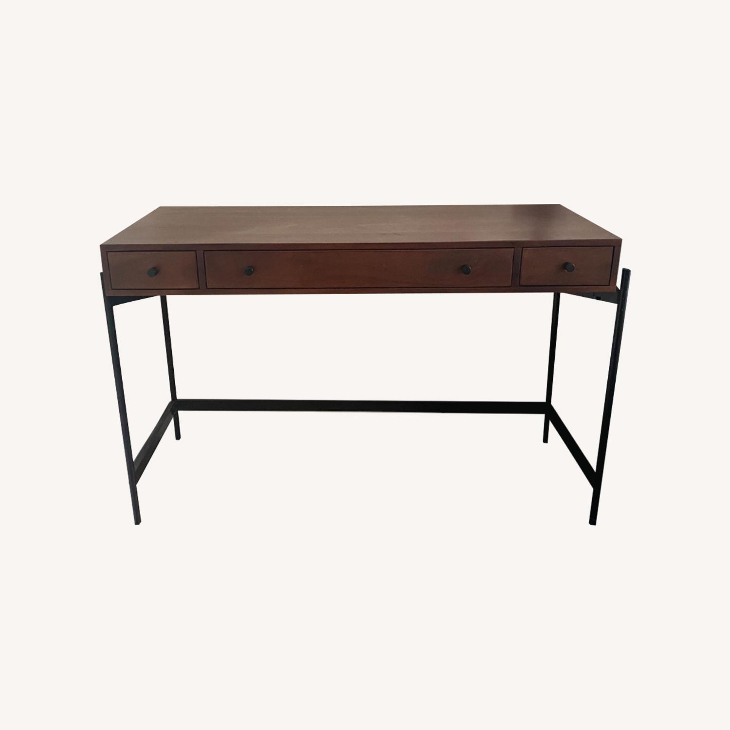 Seller's Notes:Amazing wooden writing desk with three slim and deep drawers. Slim metal legs. very good condition. Doesnt fit in out new apt, so have to sadly sell it. Nice width and looks great in any room