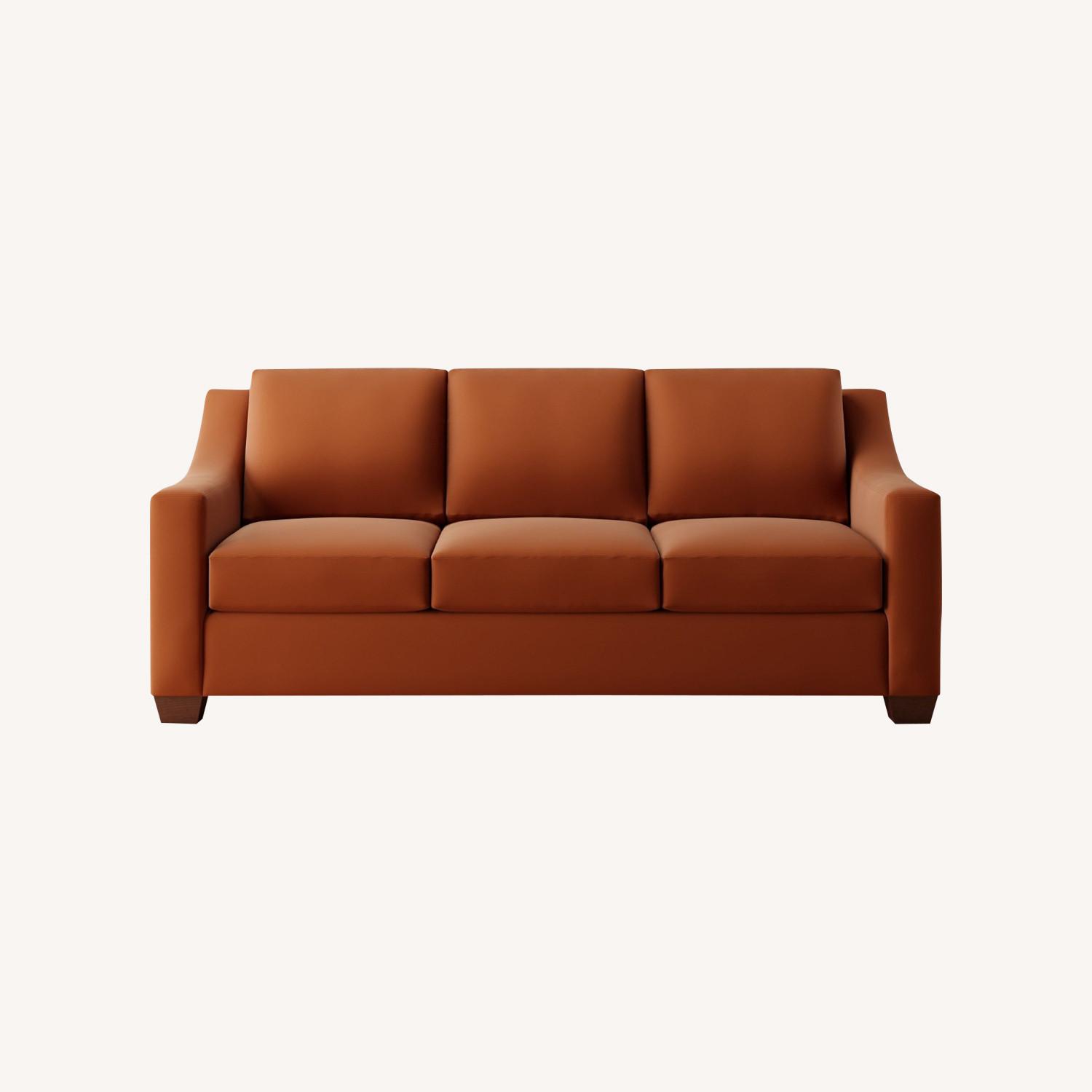 Seller's Notes:Spice Slope arms. Removable, square tapered, solid rubber wood legs are finished in Espresso. Loose cushions; available in multi-seat or bench cushion. Seat and back cushions are down-blend-wrapped for a softer feel. No-sag steel sinuous springs provide cushion support. Expertly crafted engineered wood frame with mortise-and-tenon joinery, which provides exceptional structural integrity. Adjustable levelers provide stability on uneven floors.