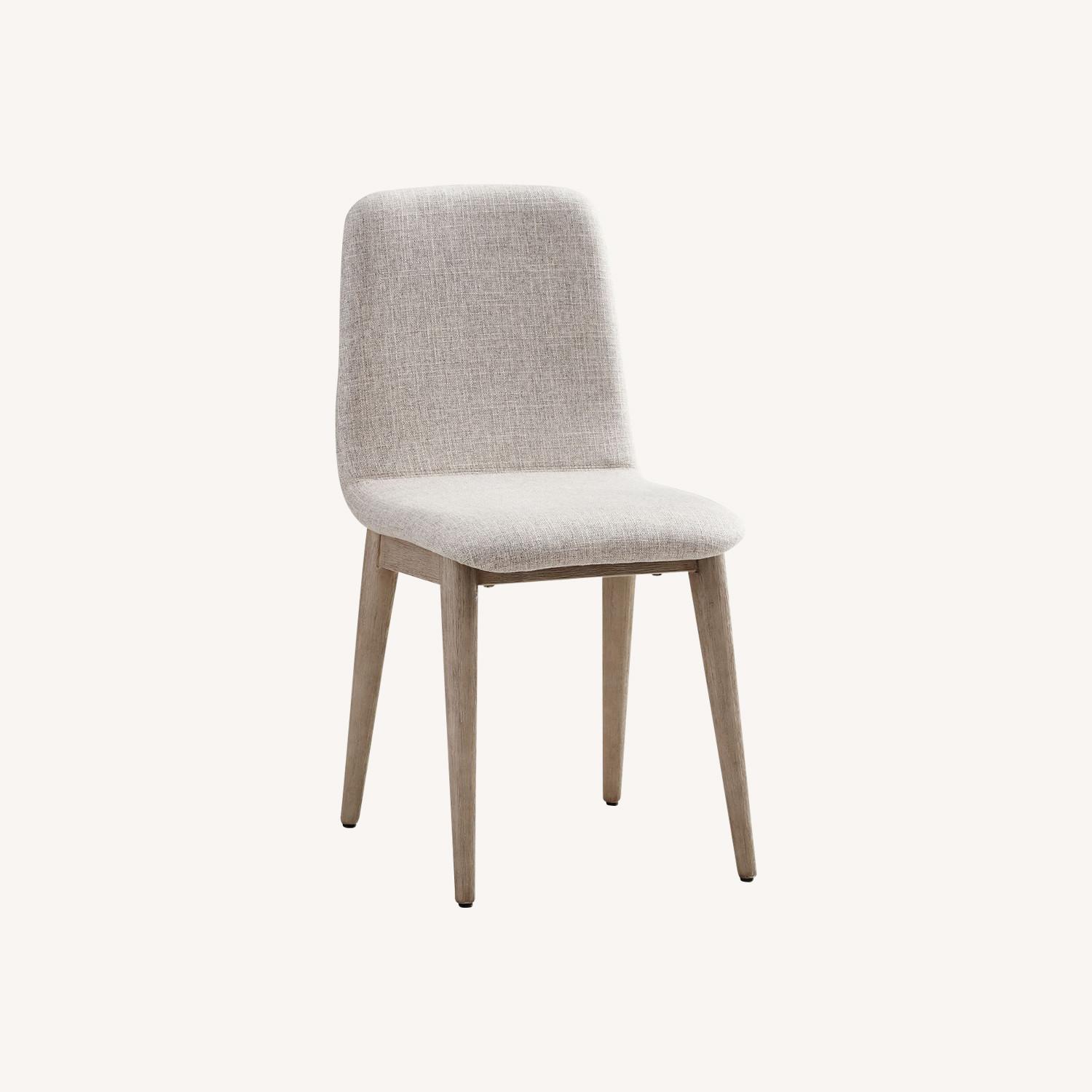 Seller's Notes:Chair is expertly crafted from solid rubberwood and laminated veneer Crafted of rubberwood, a sustainably harvested and highly durable hardwood. Seat is upholstered in a basketweave slub in Ash/Oatmeal. Seat is filled with polyurethane foam and polyester fibers. Frame is finished in Gray Wash. Sold individually or as a set of 2. Imported.