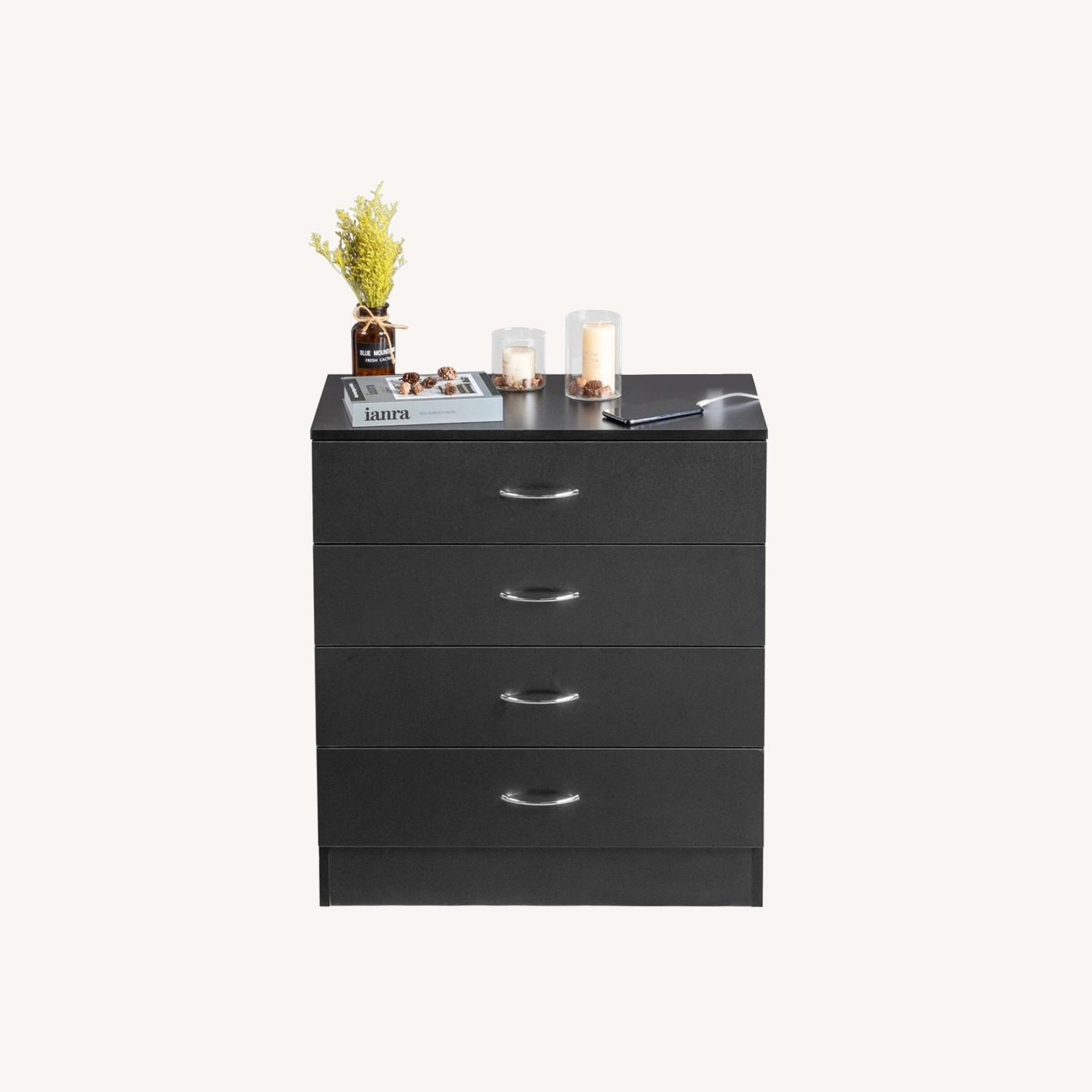 Whether you need extra room for clothes or somewhere to store spare bedding, this clean-lined dresser lets you bring storage to your space without breaking the bank. Made from manufactured wood, this budget-friendly piece features four drawers on metal glides that provide a place for bedroom essentials. Its neutral finish helps it blend with a variety of color palettes and aesthetics, while its arched accent and nickel-toned plastic hardware add a decorative touch.