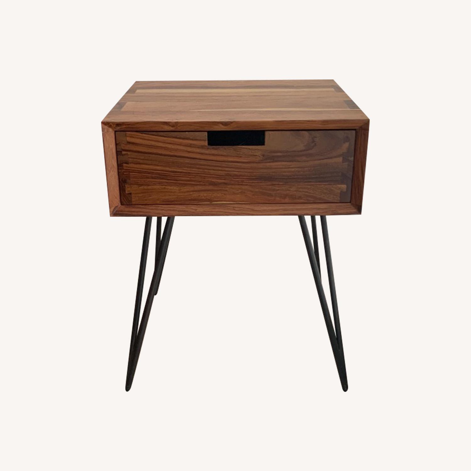 Seller's Notes:Timeless high quality piece made with sustainably sourced hardwood. It's a beautiful piece that shows the excellent craftsmanship of From The Source. Part of their Ciao collection. This is the Teak tinted version with a drawer. The warm tones of the wood make any space very welcoming. This is the real deal. Real high end furniture. I've enjoyed this piece enormously and people have commented how gorgeous it looks. I am selling it because I am moving out of state and it's just not practical to bring with me. Original price is $755+tax. I am parting ways with it for just $400