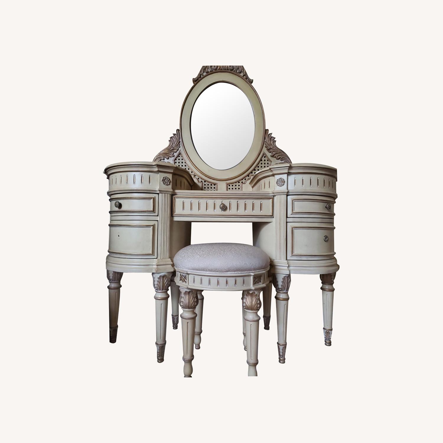 Pulaski Cream & Gold Bedroom Vanity and Stool