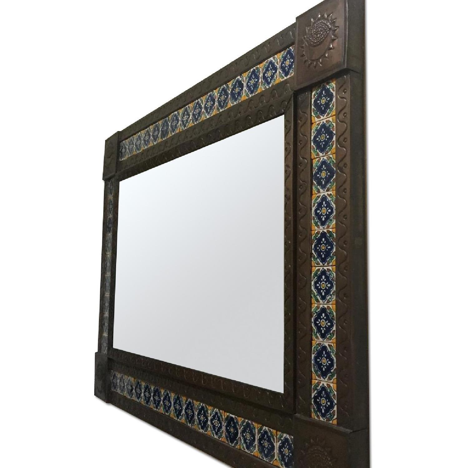 Punched Tin Mirror w/ Talavera Tile Mexican Folk Art