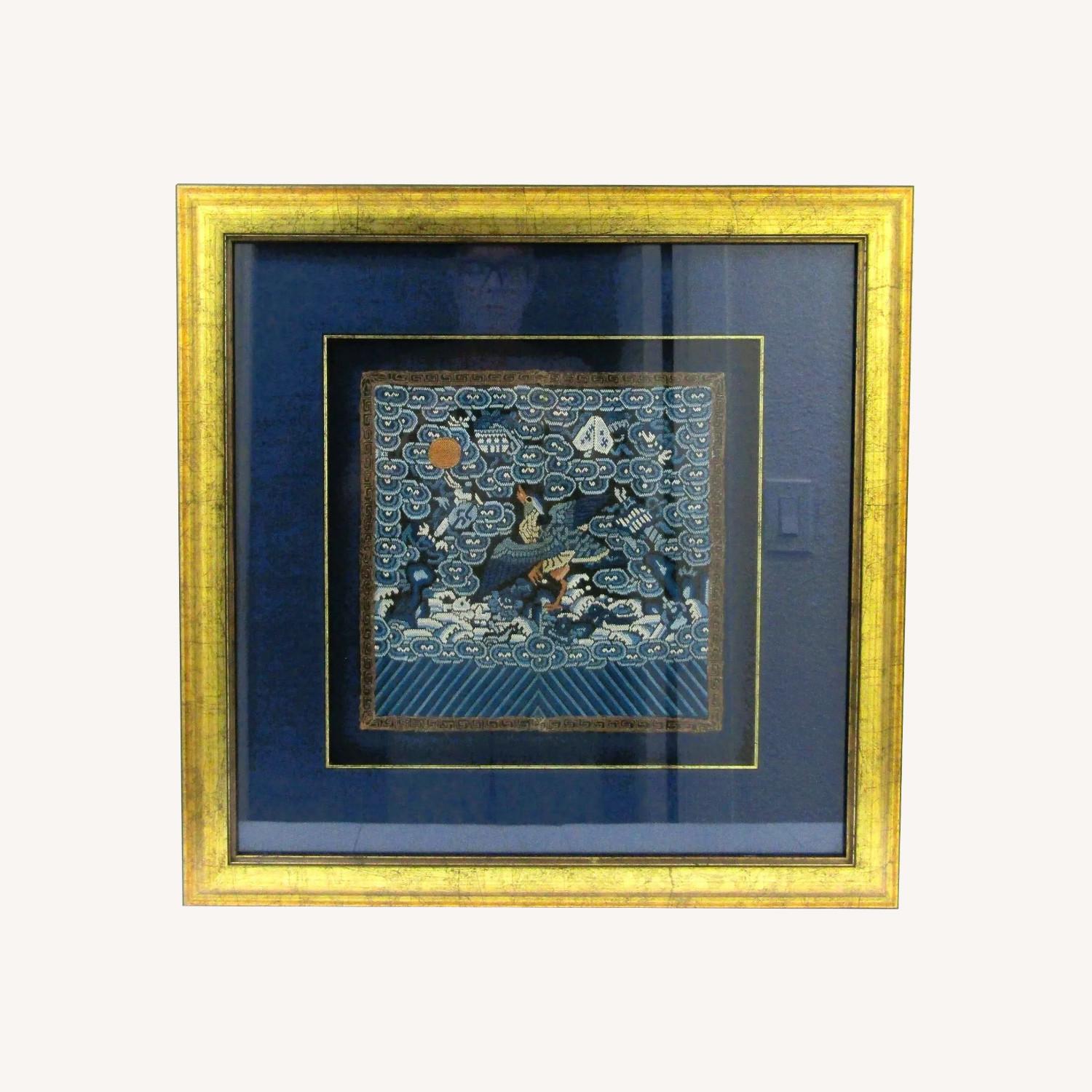 Seller's Notes:Qing Dynasty K'o-Ssu "Cut Silk" Military Rank Badge with Crane Professionally Matted and Gallery Framed The Chinese tradition of wearing rank badges (buzi), also known as Mandarin squares, to demonstrate civil, military or imperial rank began in 1391 during the Ming Dynasty (1368-1644) and continued throughout the Qing Dynasty (1644-1911). These insignia were sewn onto or woven into the wearer’s garments to indicate their rank. Attached to the front and back of a ceremonial robe, rank badges were woven in pairs with identical imagery. The badge measures approximately 11 1/4" square. The frame measures 22 1/2" square and 1 1/4" deep. Weighs 6 pounds, 4 ounces.