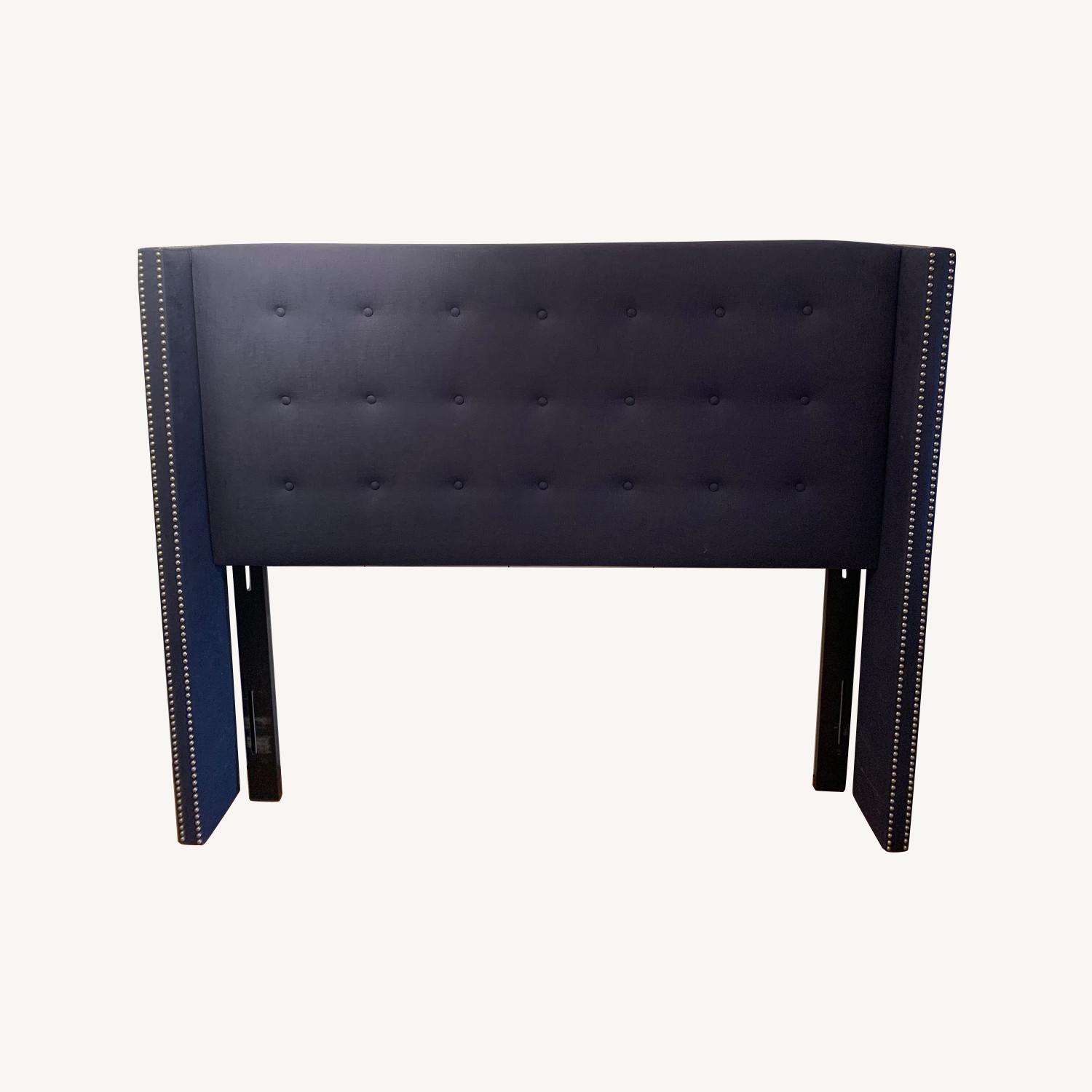 Seller's Notes:Beautiful navy linen upholstered headboard with button tufting and silver nail head trim. Attachable metal bed frame included. No pets, non smokers, routinely professionally cleaned. Very sturdy and comfortable to relax again while reading or watching tv. We love it and have used it less than two years but have gotten a bigger bed. Can be used with a queen or full mattress.