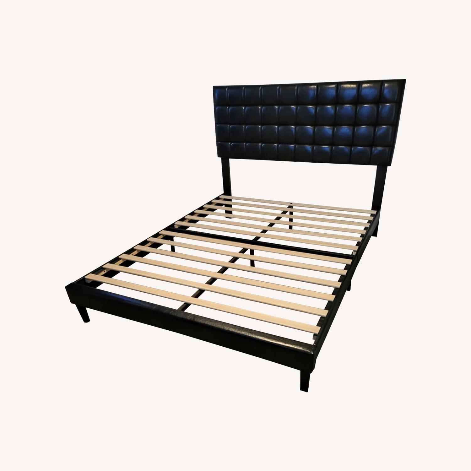 Seller's Notes:Queen Platform Bed Frame, Faux Leather Upholstered Bed Frame with Square Tufted Headboard, Wood Slats Support, No Box Spring Needed, Easy Assembly, Black.