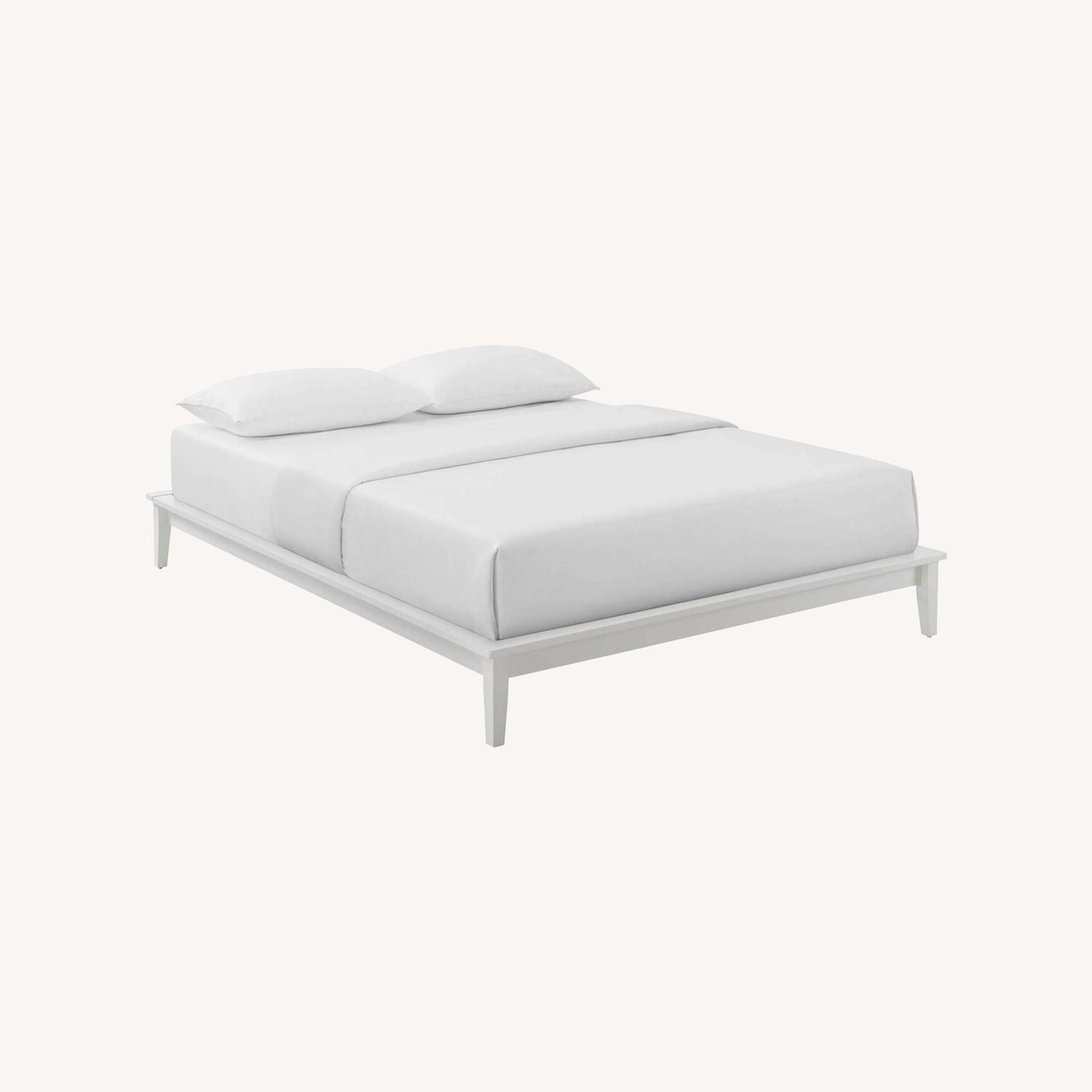 Queen Platform Bed In White Wood Slat Frame Finish