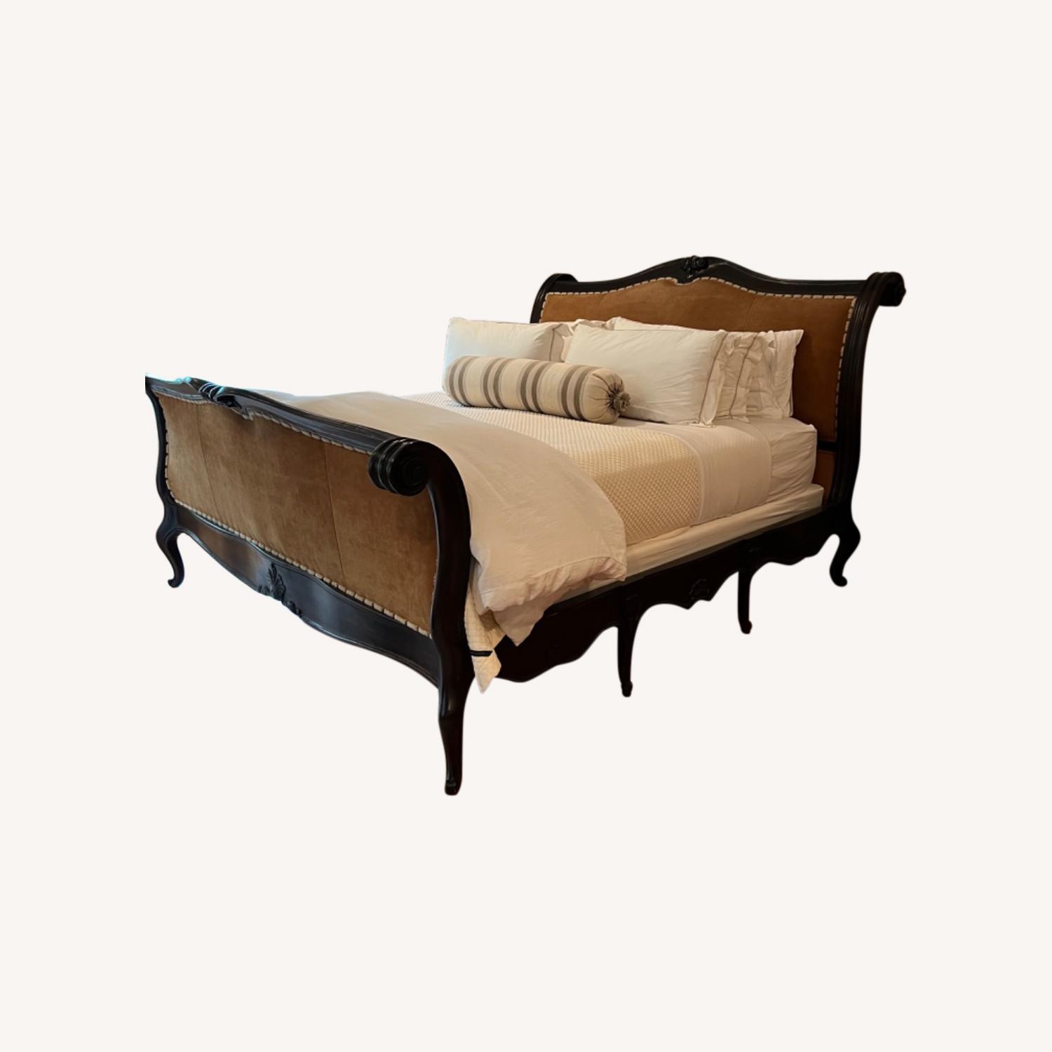 Seller's Notes:Had this custom made for our bedroom and it has served me well! We are moving and it will not be coming with us :( hope we can find a beautiful place for this beautiful piece! Wood frame with a tan suede material and shearling lining. Stunning! reach out with any questions or additional photos needed.