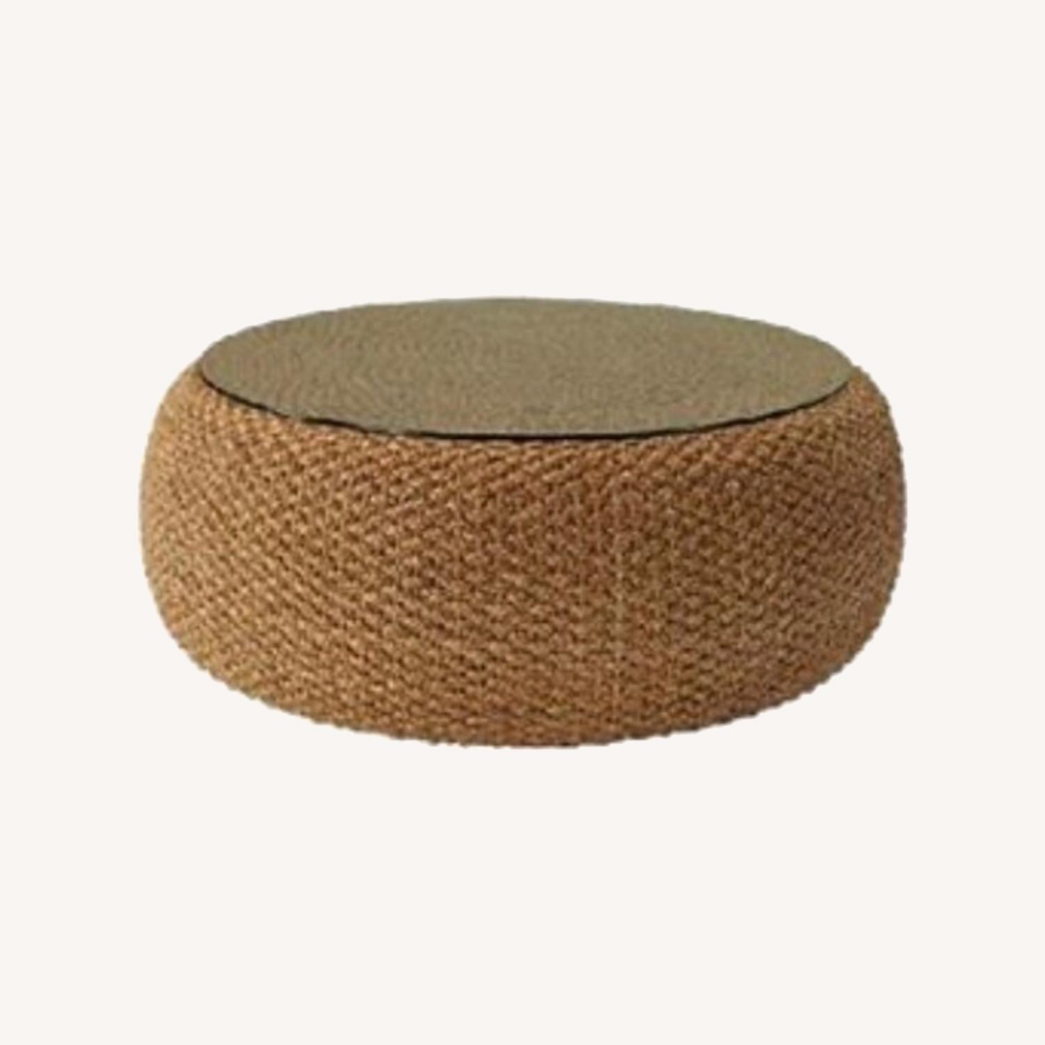 Seller's Notes:FURNITURE $2900 The Devon Woven Cocktail Table, handwoven from natural lampakanay fibers and topped with tempered glass, brings refined texture and quiet luxury to coastal, transitional, and modern interiors.