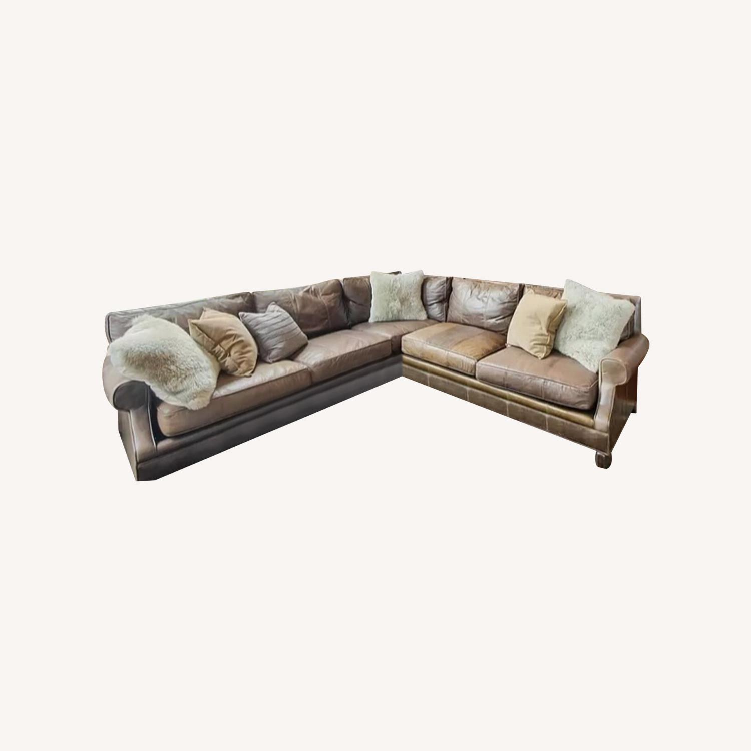 Seller's Notes:Beautiful vintage leather piece from Ralph Lauren. This couch is a statement piece, with distressed saddle brown leather, down feather filled. There is slight discoloration on a couple cushions, which is not very noticeable, due to the sun exposure from our high windows, but it has been looked after with leather conditioning and not much use.