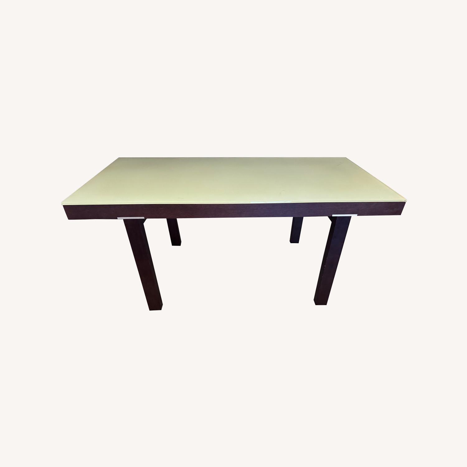 Seller's Notes:Wood dining table with textured fiberglass top. Seats 6, expands to seat 8. Great for entertaining. Very sturdy.