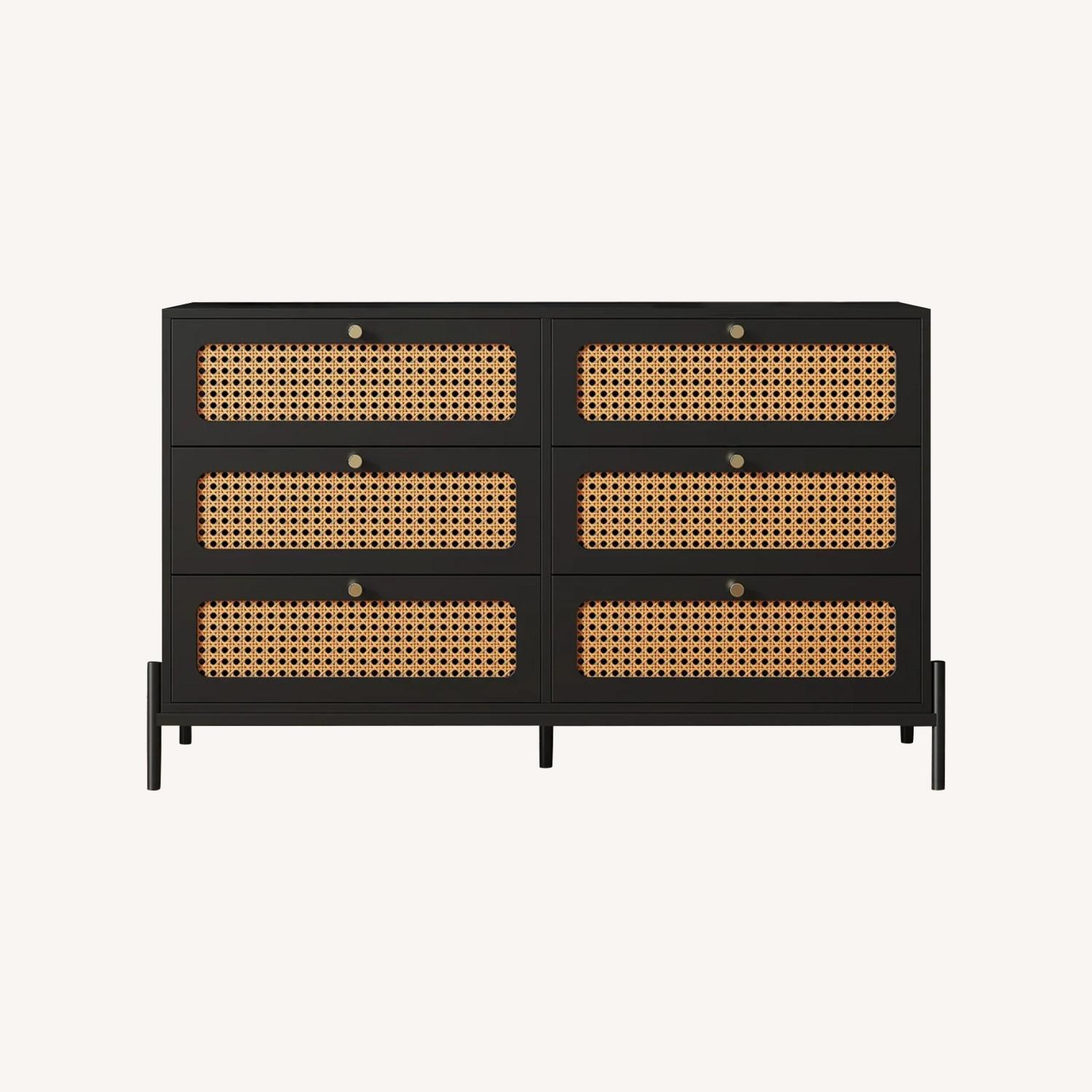 47” 6 Drawer Rattan Dresser Gold Metal Handles