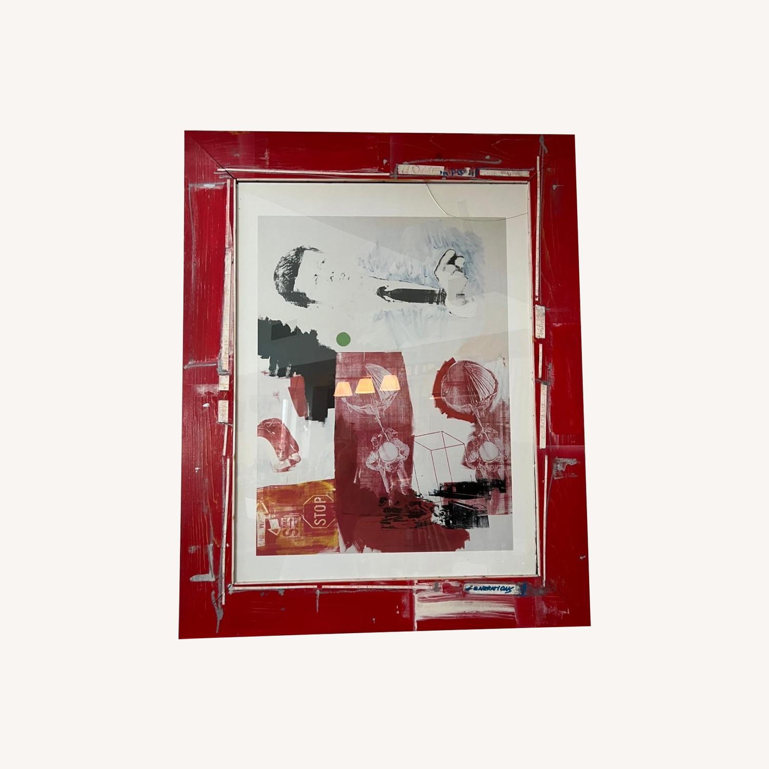 Seller's Notes:Rauschenberg’s “J.F. Kennedy Quotes, 1964” – Copy with Hand-Painted Red Frame Poster of Robert Rauschenberg’s iconic painting, beautifully complemented by a bold, hand-painted red frame. The vibrant frame adds a modern flair, making it a standout piece for any art lover. Note: The glass covering the frame has a crack but can be easily replaced or removed for a clean, frameless look. Don’t miss this unique piece!