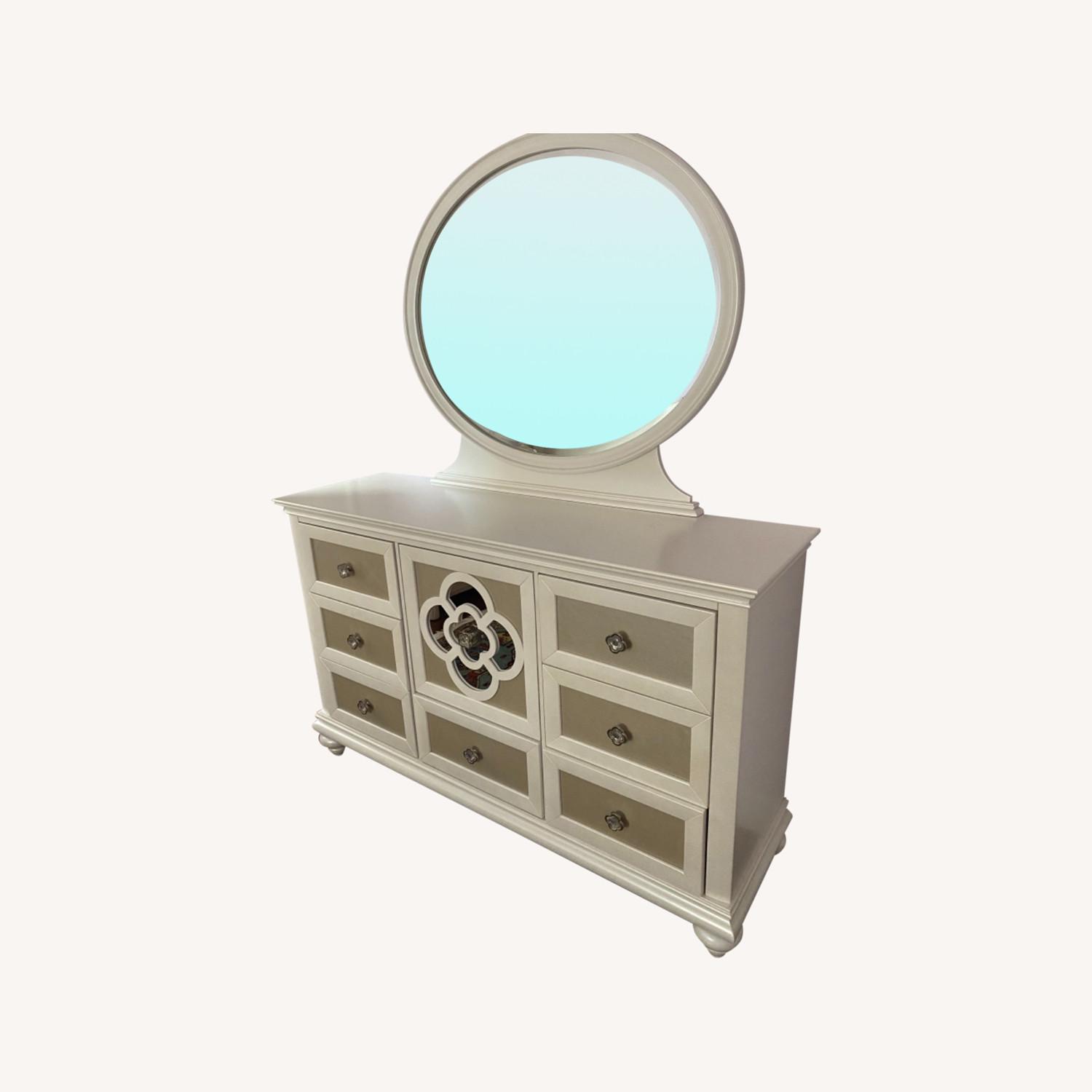 Seller's Notes:Perle white color dresser with the mirror in good condition. Plenty of storage.