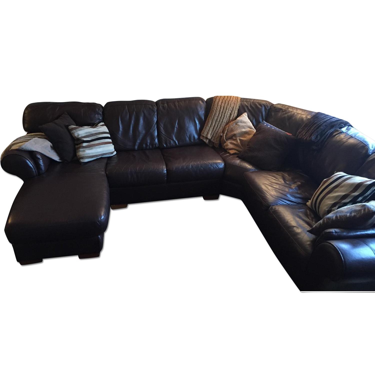 Raymour & Flanagan Leather Sectional w/ Chaise Lounge
