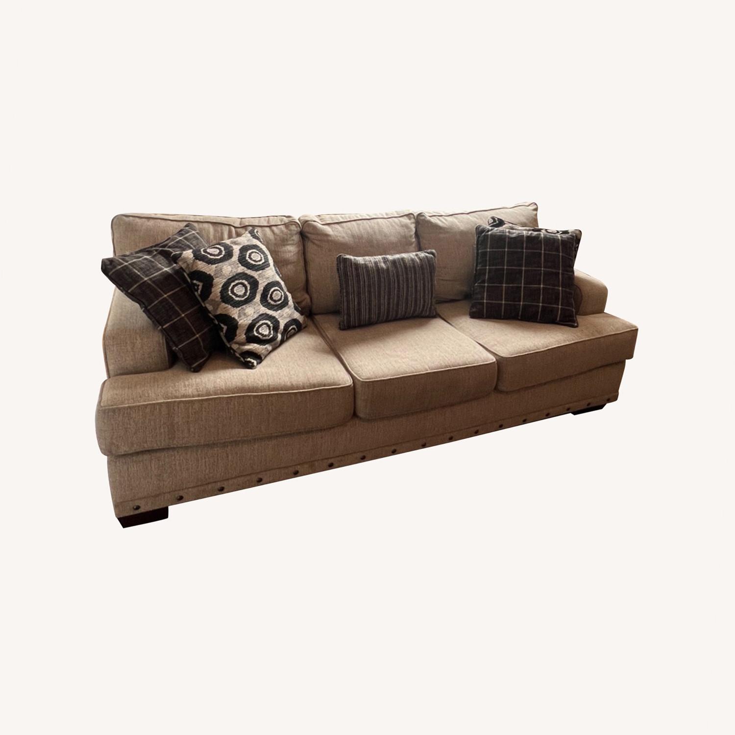 Seller's Notes:This couch is super comfy. I love the big arm rests for balancing a book or laptop. It’s also very comfortable to sleep on, for those with guests but without a spare bedroom. I have a matching arm chair for sale as well.