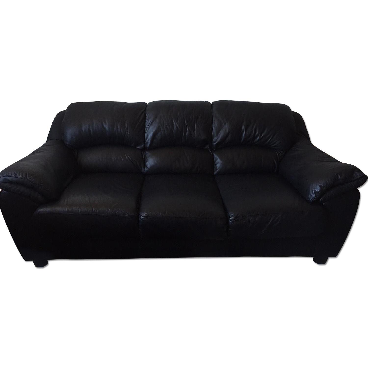 Raymour & Flanigan Black Leather 3 Cushion Sofa