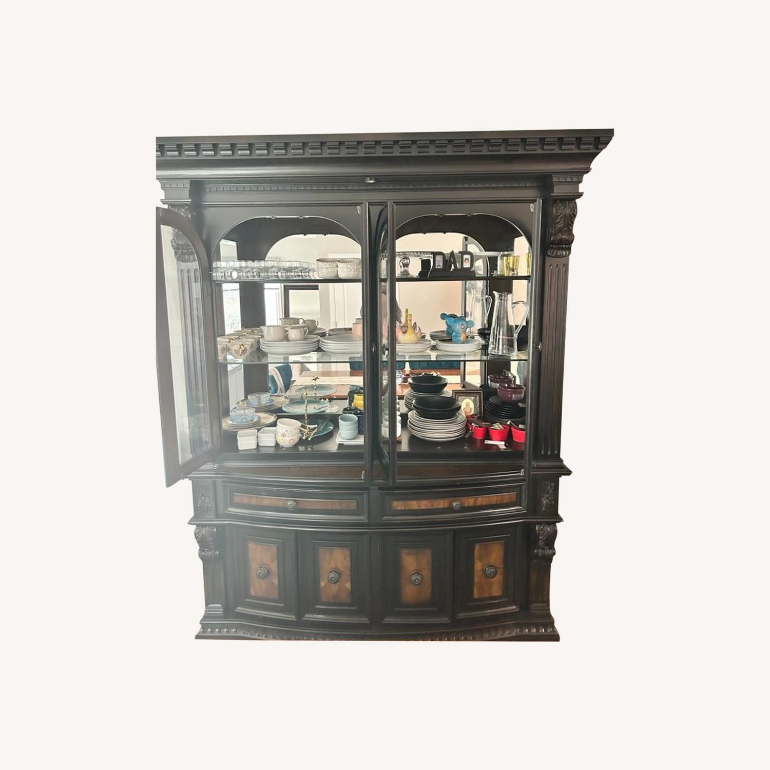 Seller's Notes:Make a statement in your traditional decor with the Bradford Heights 2-piece china cabinet. The stunning beauty of this formal dining piece is something you'll cherish every time you sit down for a meal. Mixing old world grandeur with the comfort of upholstered seats and the glamour of touch lighting in the hutch, this china cabinet is sure to delight family and friends for any gathering.