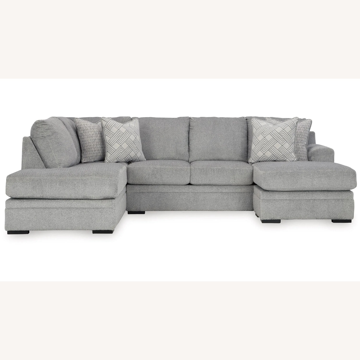 Seller's Notes:Don’t be limited by a lack of space. The Casselbury 2-pc. Sectional with Chaise makes family movie nights and get-togethers with friends all the cozier. With its double-chaise configuration, everyone has a spot to lounge. A trendy gray hue offers the contemporary style you crave. So, sit back and relax—this functional piece is ready to indulge you with everyday comfort.