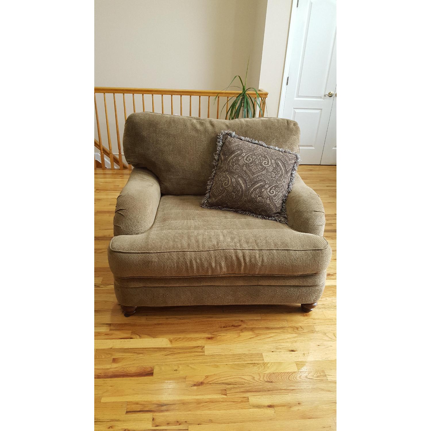 Seller's Notes:The loveseat and 1 decorative pillow (part of the set with sofa, but can be purchased separately). This is classical set bought from Raymour & Flanigan approximately 5 years ago. Made in USA. The item is in a good condition. Upholstery is removable and washable. We used the cover for both sofa and loveseat from the beginning. The slipcover will come with the set for free if needed. The color of the slipcover is beige, brand Surefit. The firmness of seating cushions is fine. Backseat cushion of loveseat is comparatively softer. For the color of the item please refer to the picture of the fabric. It can be called as plain brownish-khaki which matches perfectly with almost any colors of walls, carpets, and decor items. We are selling to purchase a corner sectional sofa instead.