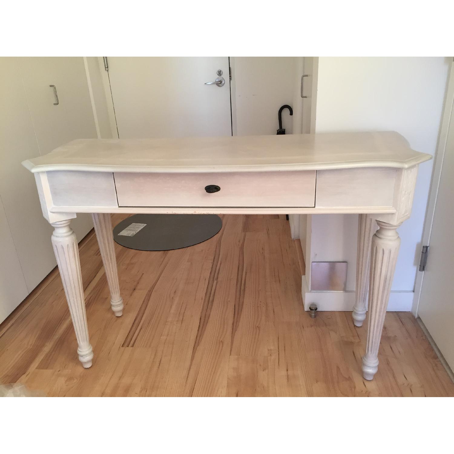 Seller's Notes:Whitewashed finish with some minor damage. It's from Raymour & Flanigan. I think I bought it for $200. Then I had the table professionally finished. The cost of the refinishing was twice the price of the table. I had it in my vestibule and stored my foldable bike underneath. You can pick up at my apartment in Hell's Kitchen. The legs screw off and it will fit in a large cab. 49 1.2" X 33" X 18"