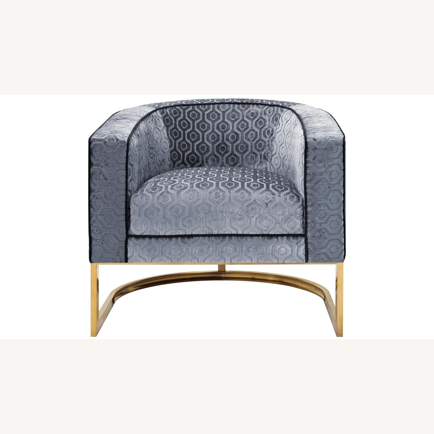 The Diana accent chair is exotic, adventurous and glamorous. Stunning patterned upholstery and a brass-finished metallic frame create a distinctive, unique and daringly sensuous look. Velvet-look polyester adorns this piece, and its rounded back is designed specifically with comfort in mind.