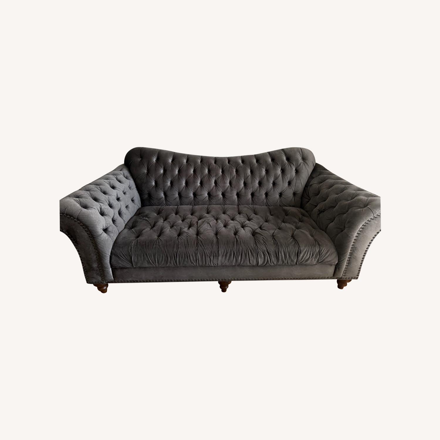 Seller's Notes:the Duchess sofa's name is quite befitting, since this lavish piece radiates opulence. Velvet-look upholstery provides indulgent comfort, and the subtle gray-on-gray pattern offers plenty of allure. Plus, impress your guests whenever you entertain with exquisite features like dramatically curved roll arms, button tufting and thick nailhead trim.