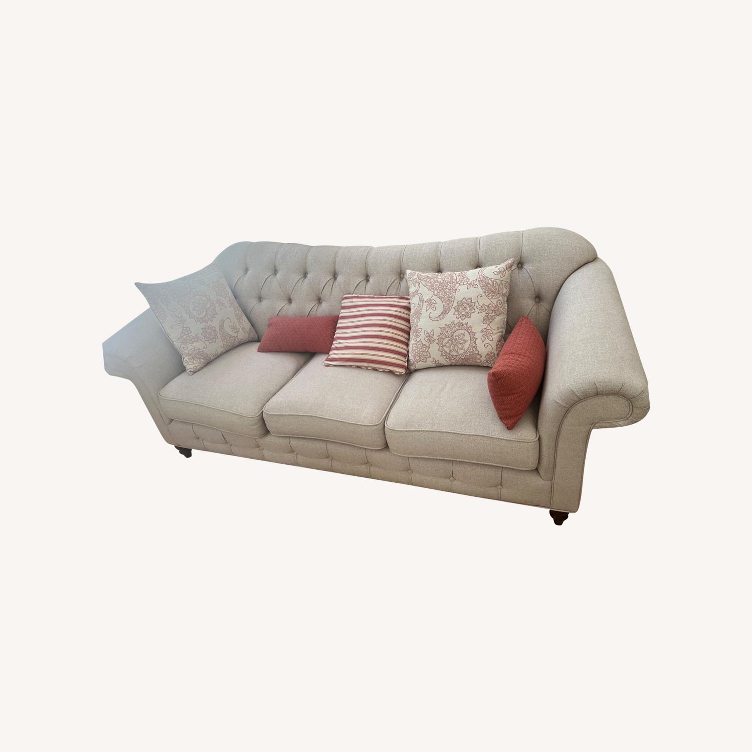 Seller's Notes:Raymour&Flanigan Light Gray Novella Sofa SKU#200384662 Amazing condition, used as decor rather than seating, beautiful cushions and pillows and has no blemishes or anything of the sort. It is basically new.