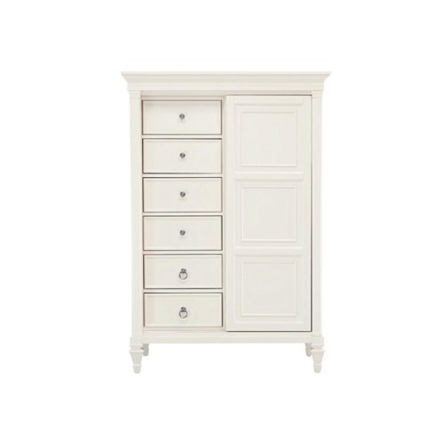 Seller's Notes:This breathtaking Somerset chifforobe in alabaster white will adorn your bedroom with the quaint look and classic presence only timeless white furniture can offer. Handsome fired-nickel hardware adds just the right finishing touch to complete the chifforobe's charming design.