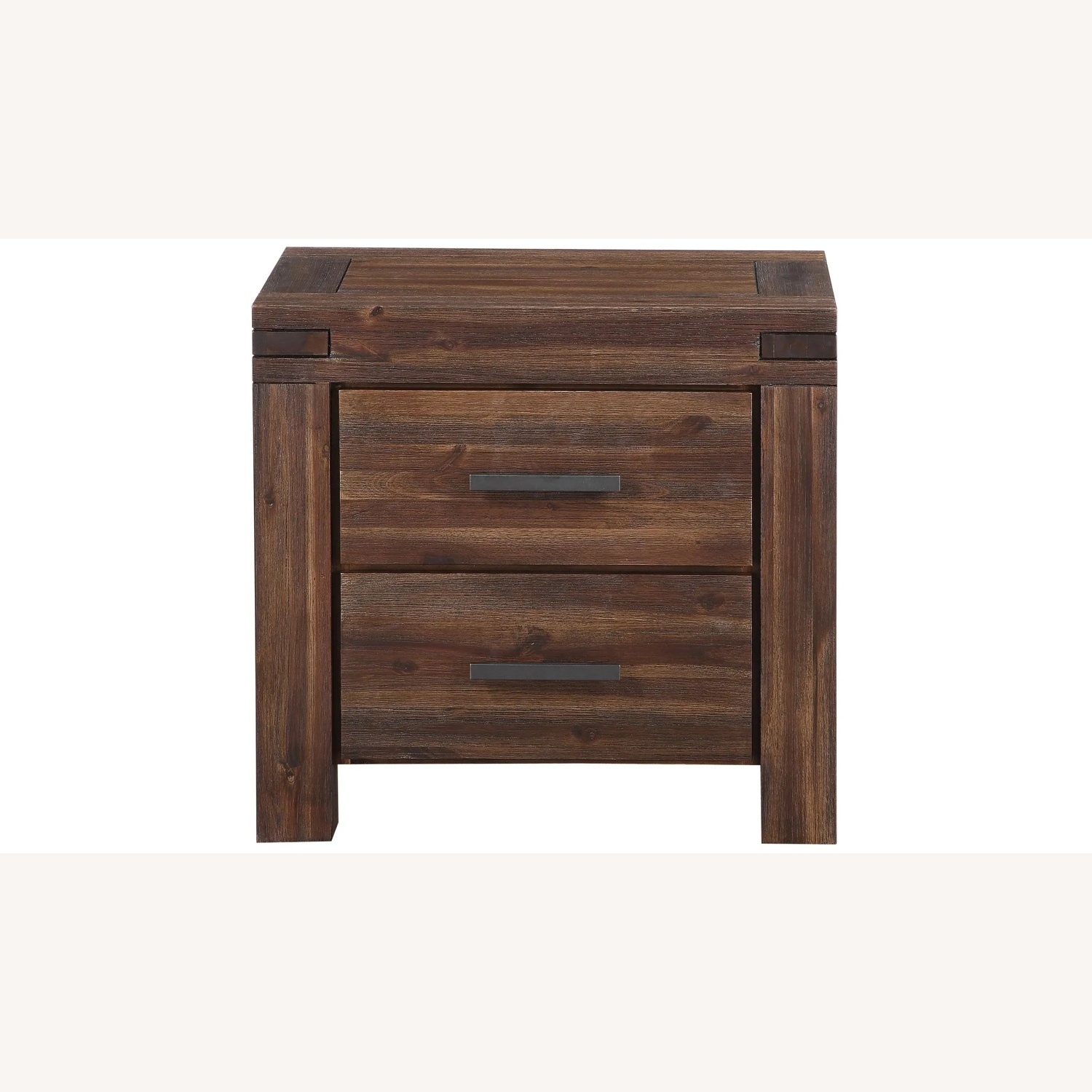 Seller's Notes:The Middlefield nightstand is constructed from solid acacia wood, a hardwood best known for its stunning grain and rich contrasting colors. Eco-friendly and durable, the lumber also possesses a three dimensional quality, as color and luster vary by lighting. Each piece is wire brushed, stained, treated with a rustic glaze, and sealed with a protective lacquer. The multi-tonal quality of acacia wood makes it an easy compliment to existing home decor. This modern rustic nightstand offers clean, straightforward styling to allow flexibility when designing around it. Bold lines are ideal for the minimalist, calling only for an accent rug and bedding. For the more creative, natural ambience is easily embellished with modern, traditional, rustic or lodge-styled prints, patterns, and accessories.