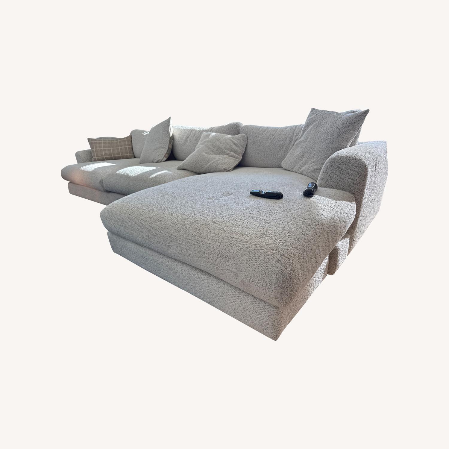 With the generous proportions and plush seating of the Montecito sectional from Drew & Jonathan, you can invite a crowd to join you for movie nights, parties, lounging and more, and rest assured that everyone will find their own perfect perch. The 5-layer cushioning features a feather down blend for a superior seating experience. Soft ivory chenille and wide track arms make this a natural choice for a casual comfort oasis.