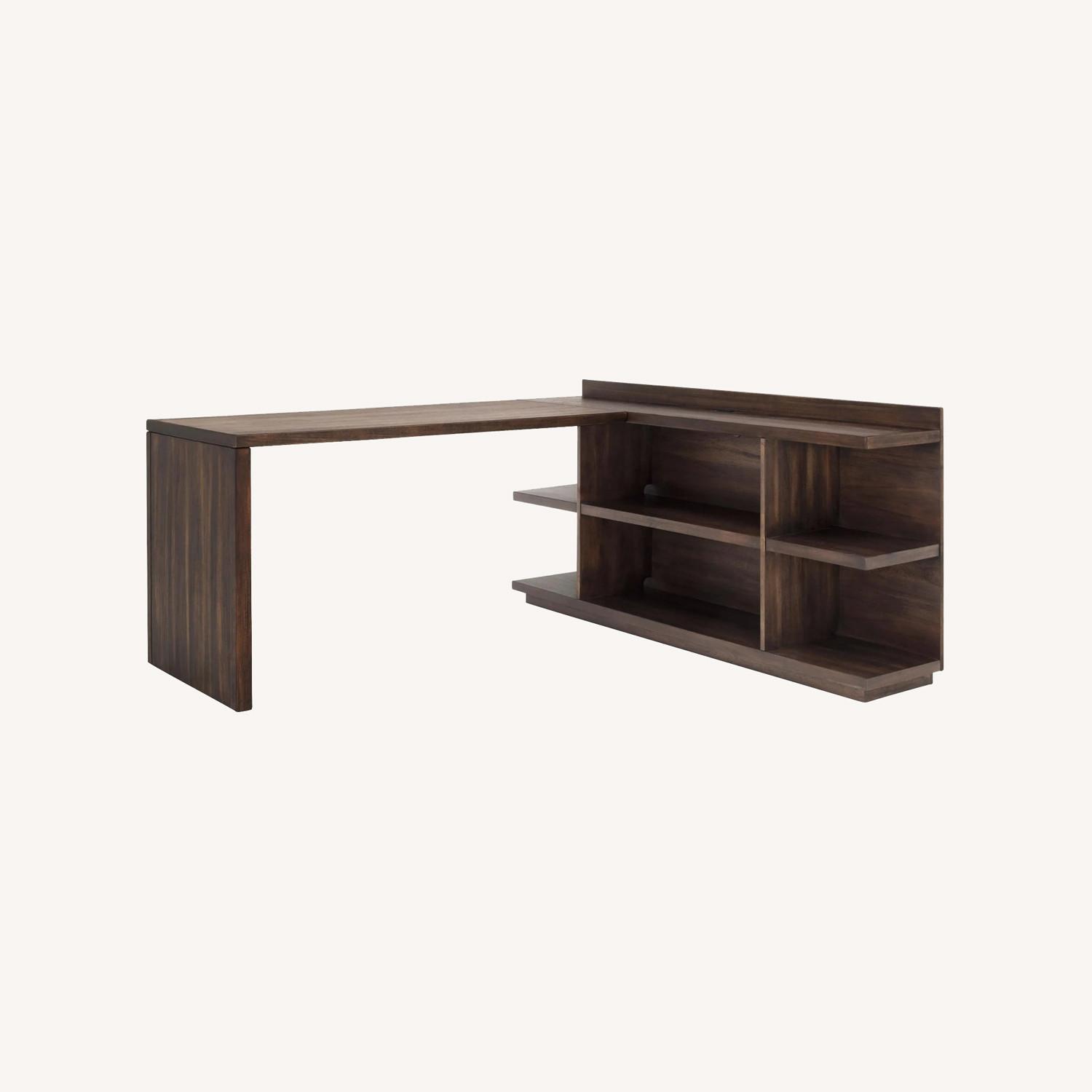 The Newell L-desk with bookcase takes the best features of transitional and nature-inspired styles and blends them together seamlessly. It has all your office needs covered with its functionality and versatility. The large corner desk comes equipped with a convenient bookshelf that adds even more storage to your space. With a stunning antique bronze hardware finish and sun-drenched acacia veneers, Newell is the key to building your stylishly multifunctional workspace.