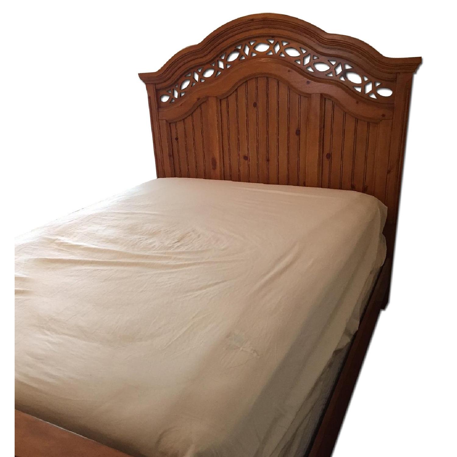 Seller's Notes:This traditional looking queen bed was purchased at Raymour and Flanigan. Excellent condition and has been cared for and cleaned over the years. It has never been moved since it was first delivered! It also has not been exposed to any pets or cigarette smoke.