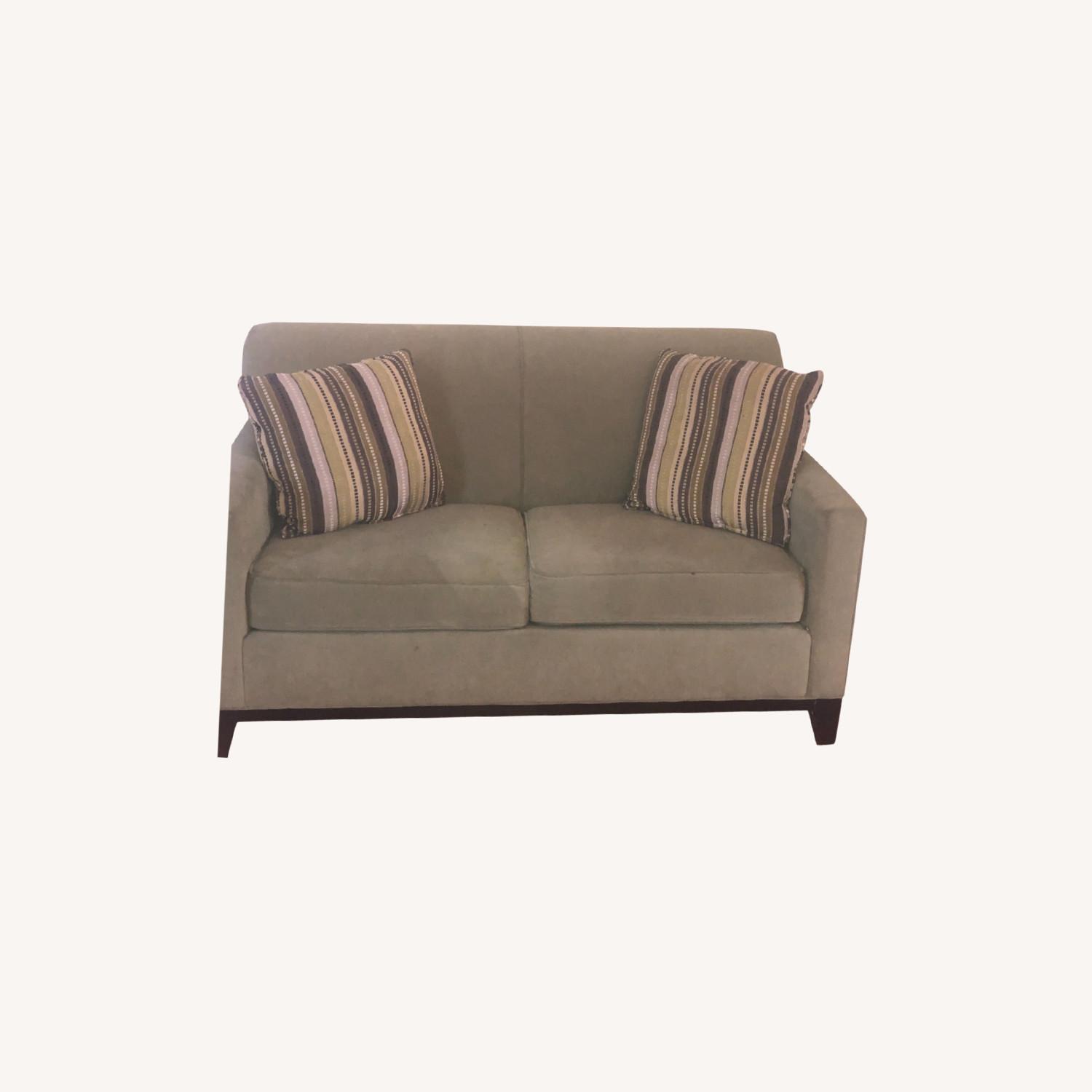 Seller's Notes:Living room set is comfortable with clean lines. Enjoyed many movie nights along with talks over drinks. Can change out pillows to give a different look; color of couch goes with many decors.