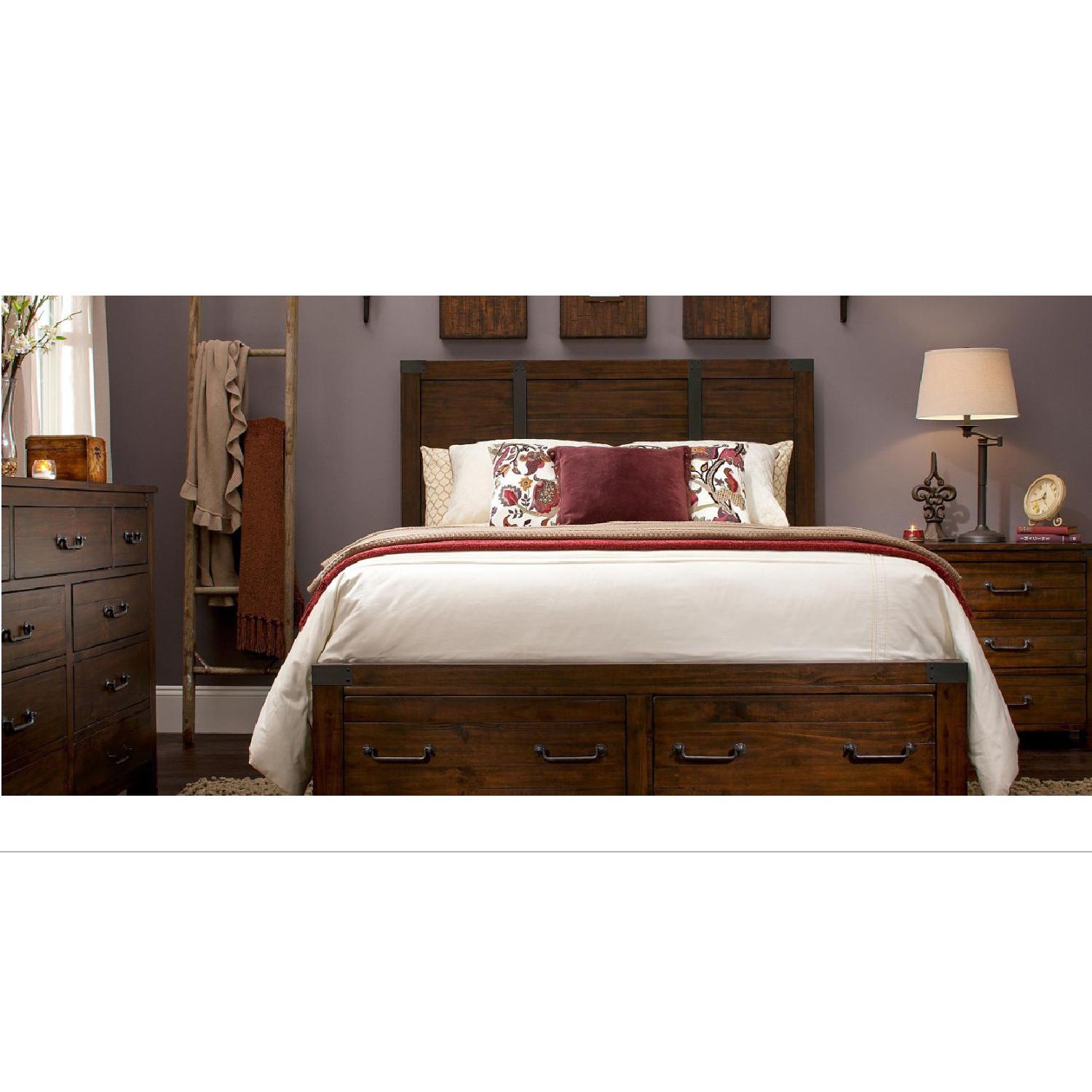 Raymour & Flanigan Shelton Queen Storage Bed in Rustic Pine