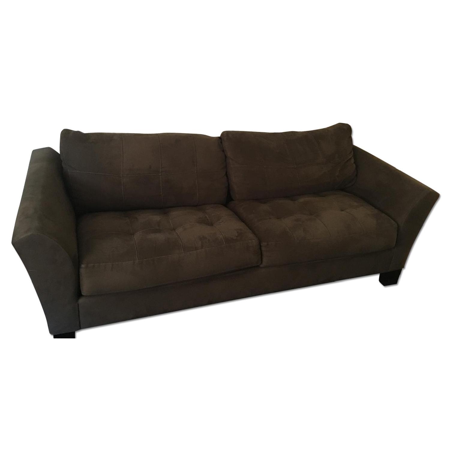Seller's Notes:bought used from a friend who moved away. they had this couch for about a year. it is very comfortable, has good semi-firm cushions that are not worn out or sagging. there are NO stains or scratches, besides the small tiny scratch on the left armrest and small white streak - both visible in last photo. the fold out bed has never been used - my room is not big enough for me to fully fold out the bed, as you can see from the photos, the bed is clean and folds out half way no problem i would rate this couch 8.5/10 condition.