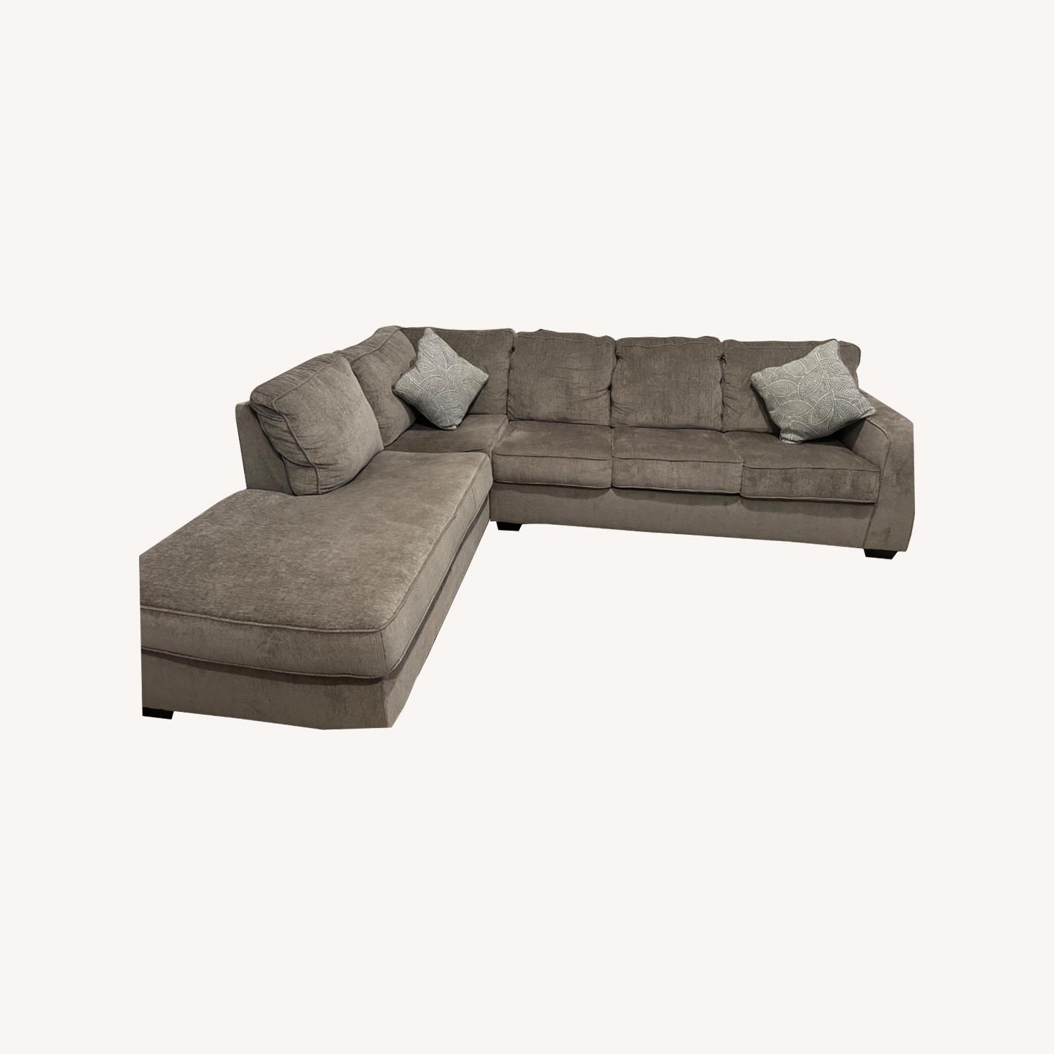 Seller's Notes:Raymour & Flanigan Sleeper Sofa w Corner Chaise. Purchased on 11/1/2021 and excellent condition. Sofa is 76X38X37 & Chaise is 34X90X37. Color is Alloy (light grey).