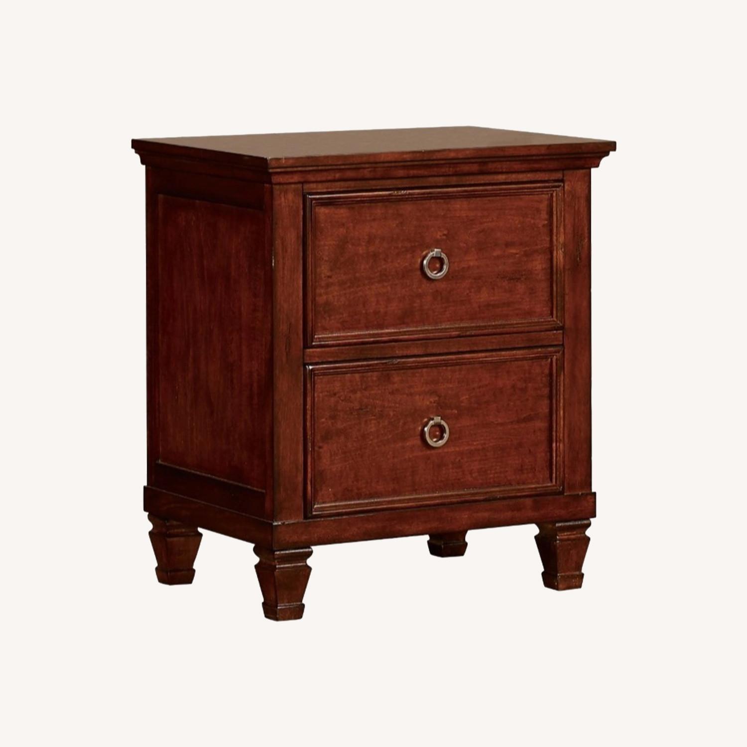 Seller's Notes:Classic Furniture Tamarack Nightstand in Brown Cherry. The Tamarack collection showcases the versatility of a clean and modern look. The collection is comprised of poplar and basswood solids and veneers and either a black or white finish to compliment any decor. Details such as mock raised panel framework, round, silver finished hardware, and shaped case feet take this suite from simple to sophisticated.