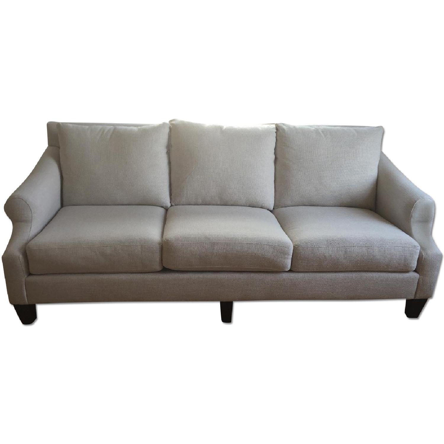 Seller's Notes:This is the beige Raymour & Flanigan Tatiana sofa and seriously, it's brand new. There are no blemishes, zero scratches, and not one stain. It's pristine. We bought it from Raymour & Flanigan last week and had it delivered on Friday September 11th only to find it didn't fit in our apartment. Whoops. R&F doesn't take returns so we're taking a hit in this. It's comfortable, beautiful and brand spanking new. If it fit, we'd keep it. But it doesn't. So it's all yours. Here's a link to the sofa on R&F: http://www.raymourflanigan.com/tatiana-chenille-sofa-200203115.aspx